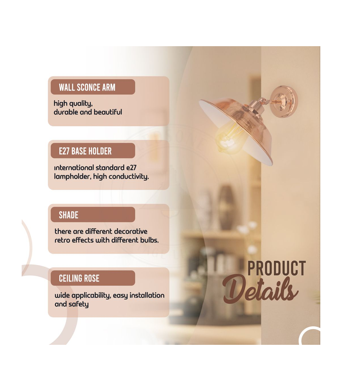Vintage Industrial Rose Gold Retro Wall light Sturdy Metal Lamp Shade Lights Classic Style Electroplated Finish E27 lamp