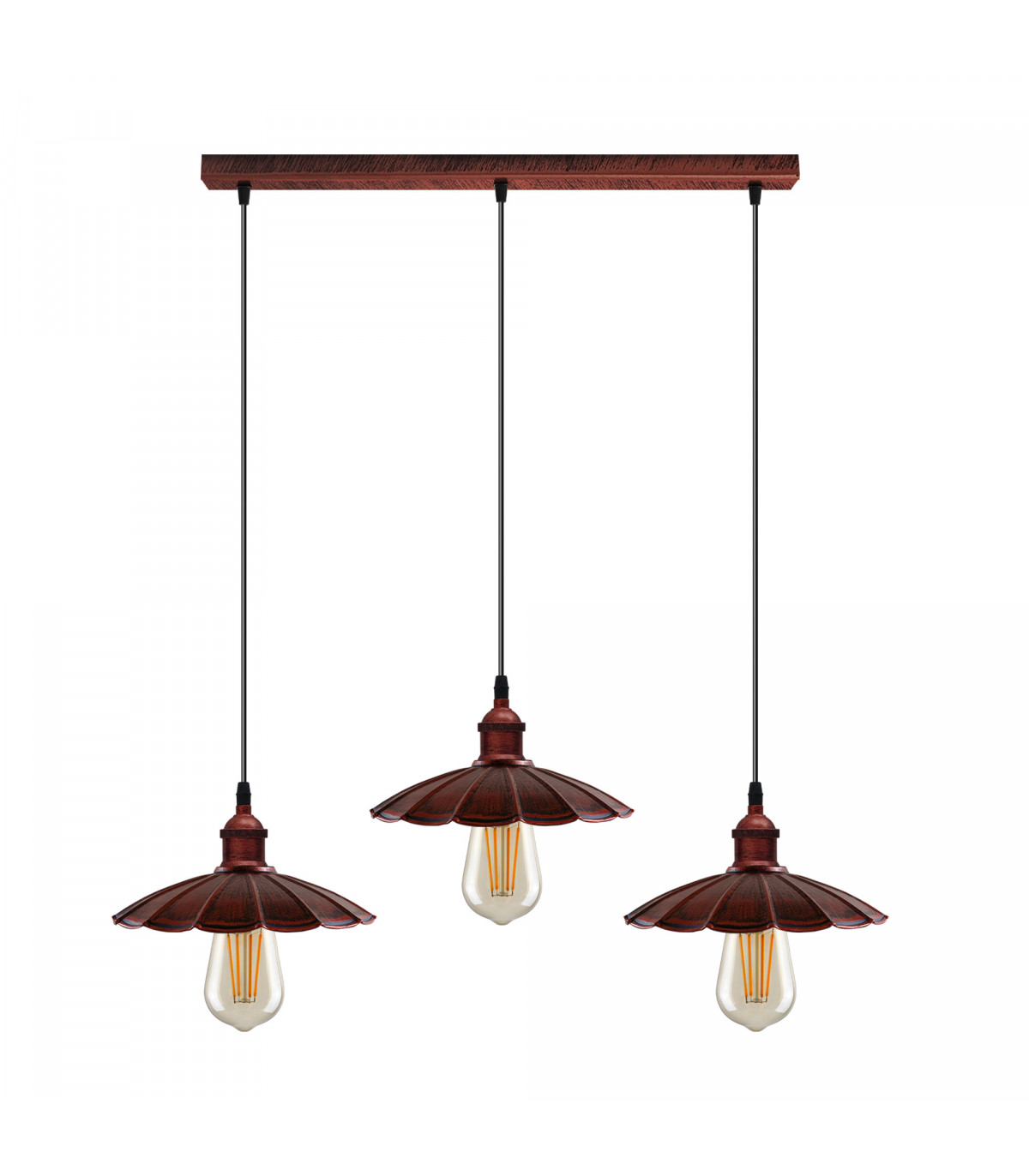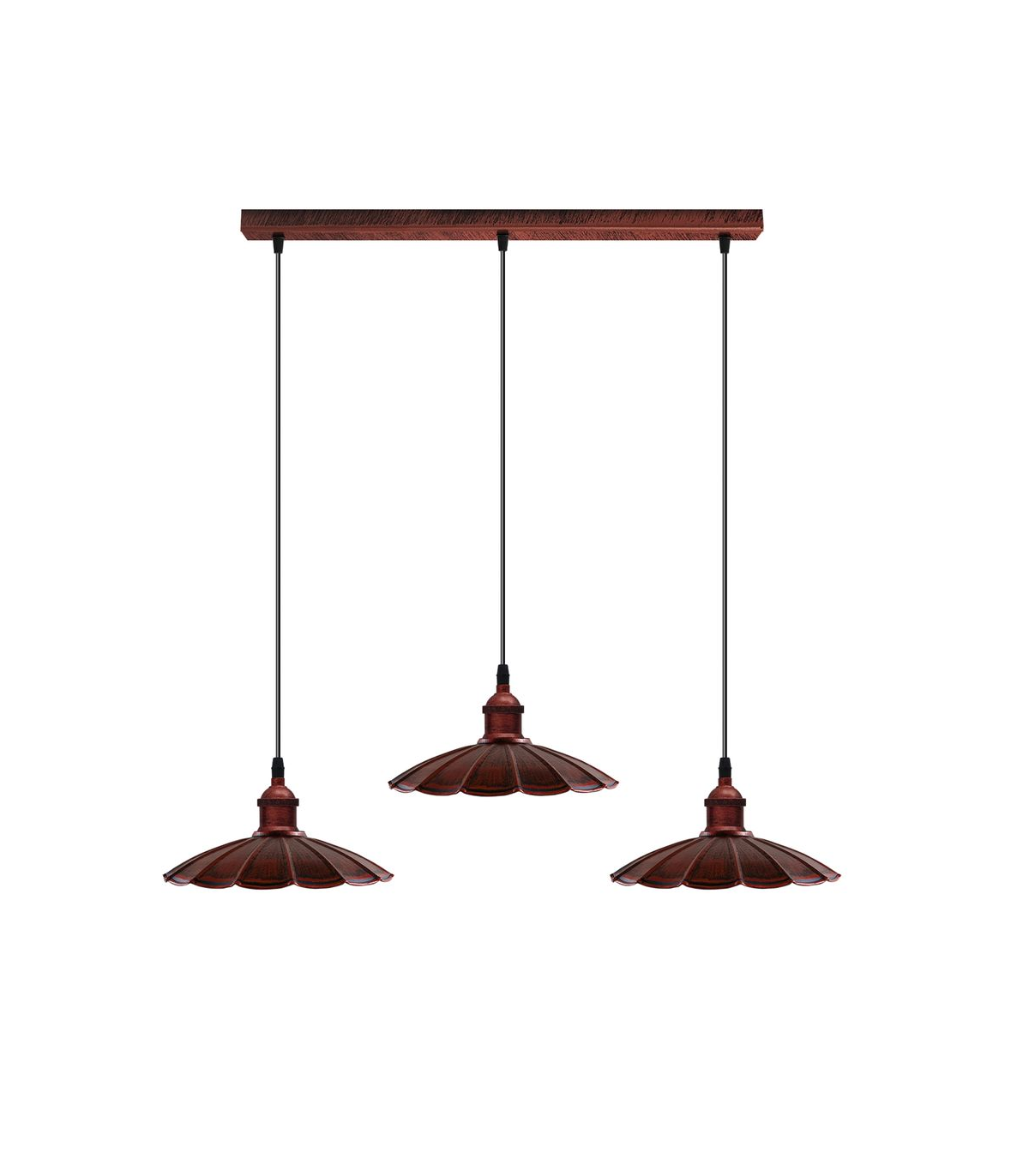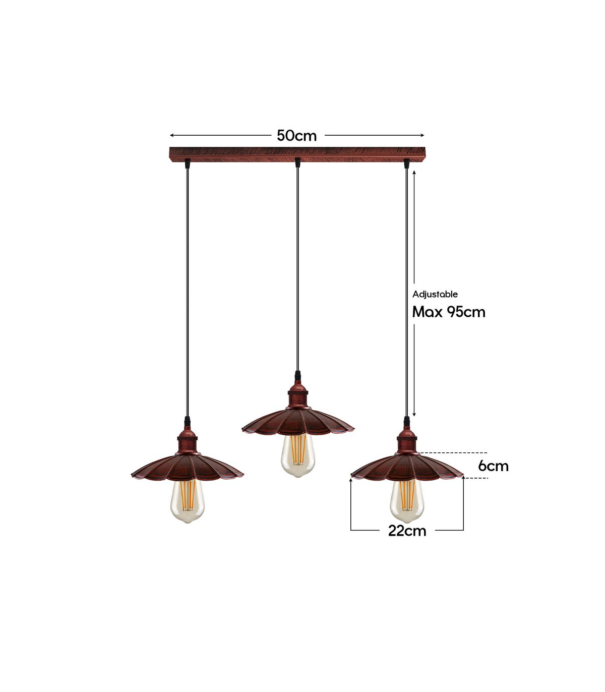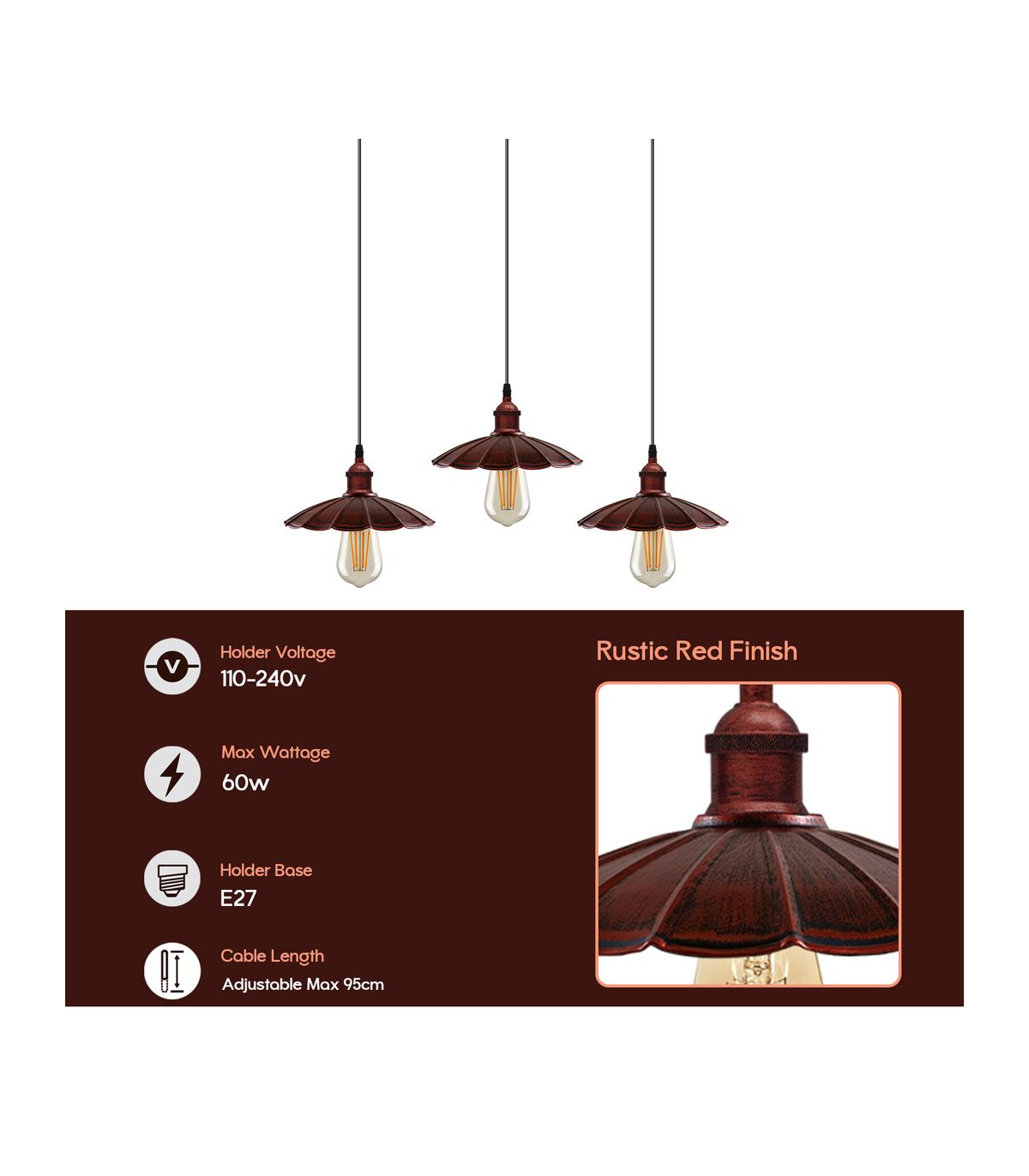 Vintage Industrial Rustic Red 3 Head Reactangle Pendant Cord E27 Metal Brushed Light Fitting Umbrella Shape Lamp Shade
