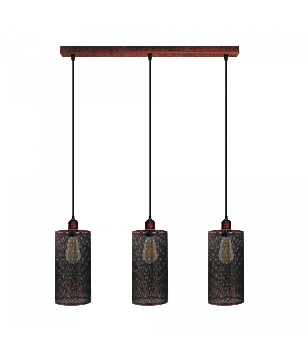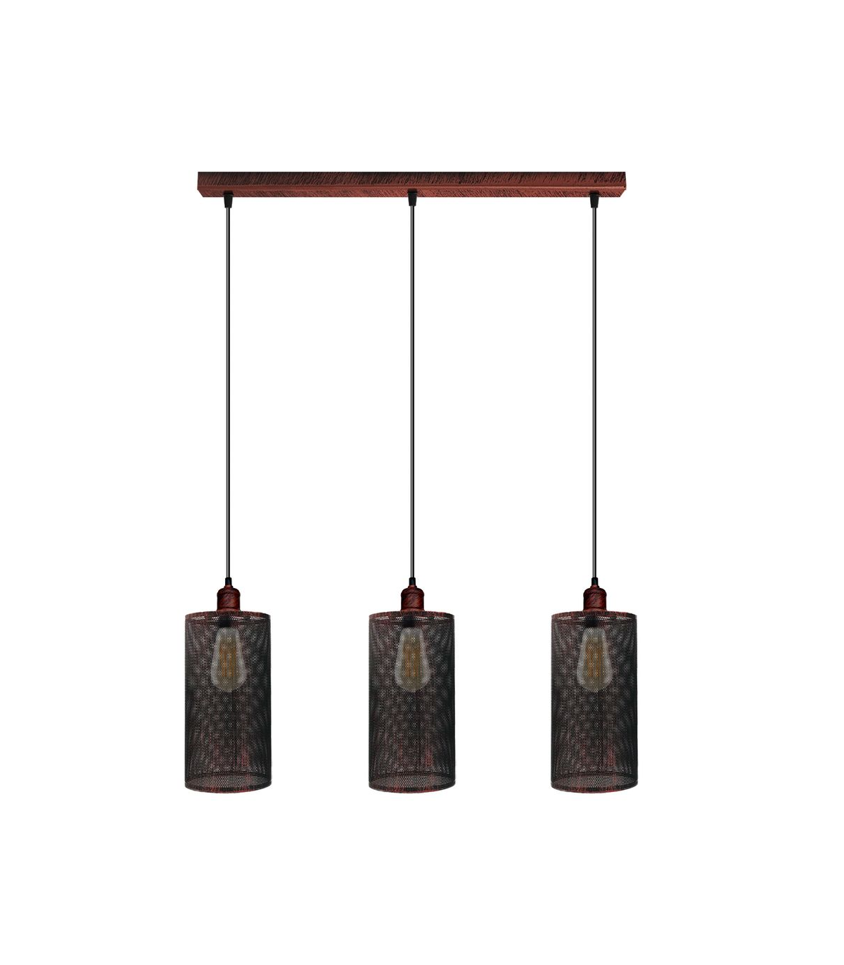 Vintage Industrial Rustic Red 3 Head Reactangle Base Pendant Cord E27 Metal Brushed Light Fitting Barel Cage Lamp Shade
