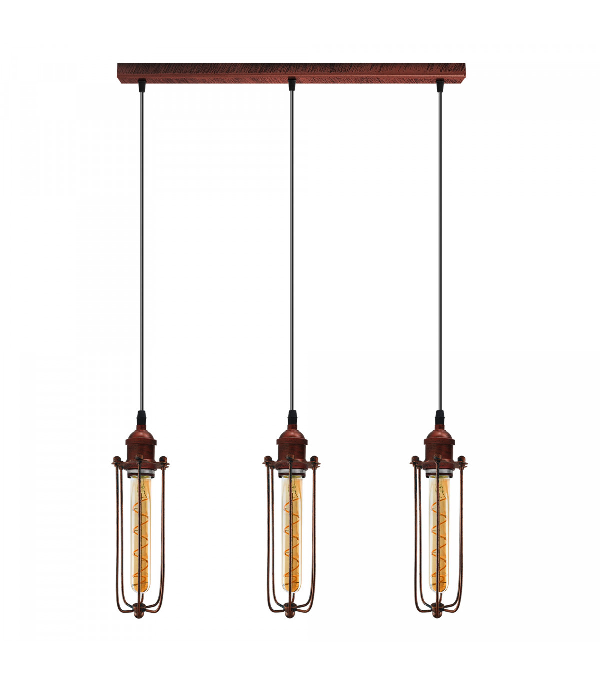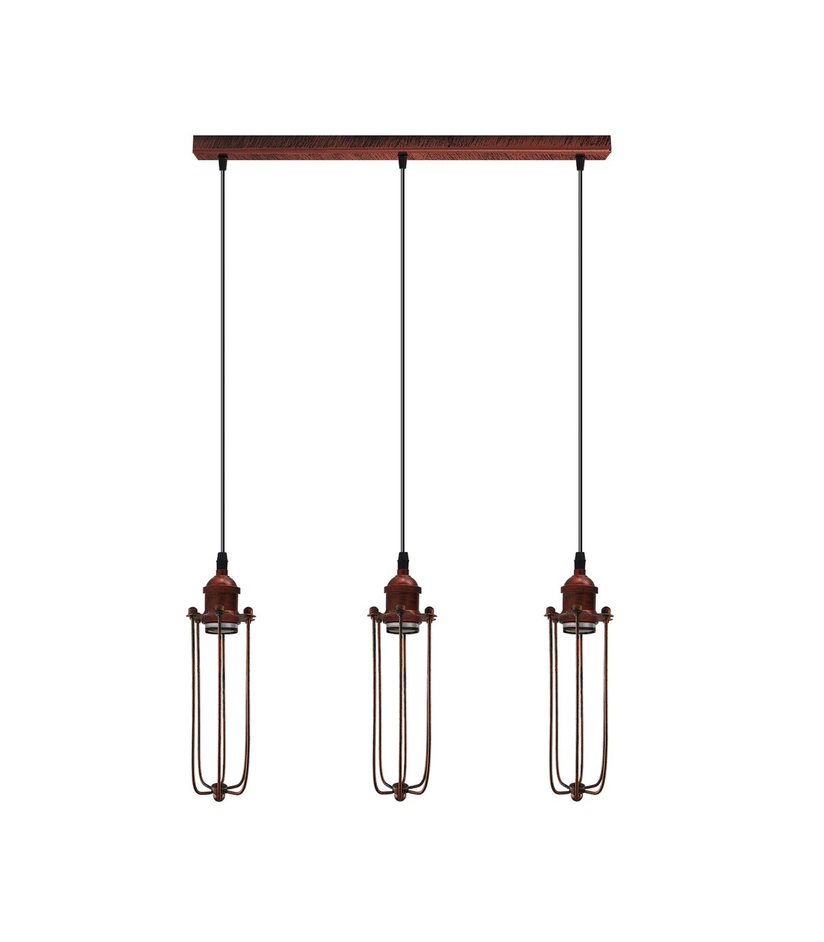Vintage Industrial Rustic Red 3 Head Reactangle Base Pendant Cord E27 Metal Brushed Light Long Wire Cage Lamp Shade