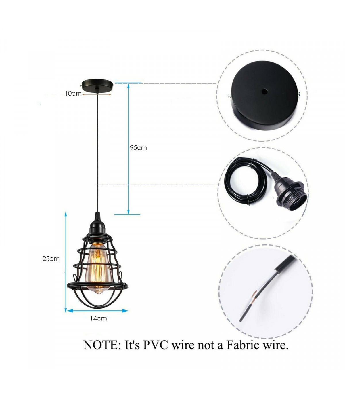 Vintage Modern Black Hanging Pendant Light Ceiling Lamp With95cm Adjustable Wire For Kitchen, Bedroom, Living room