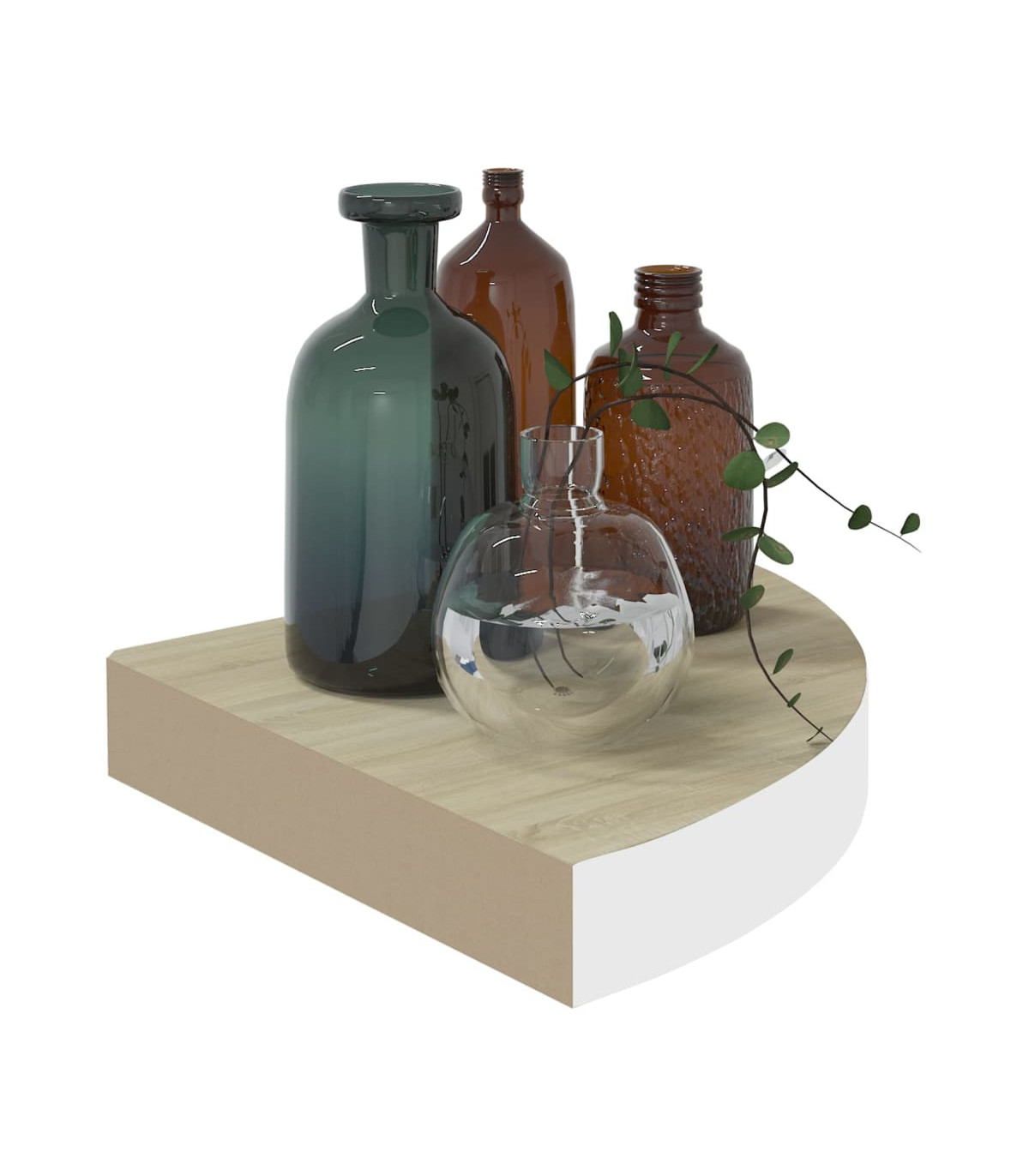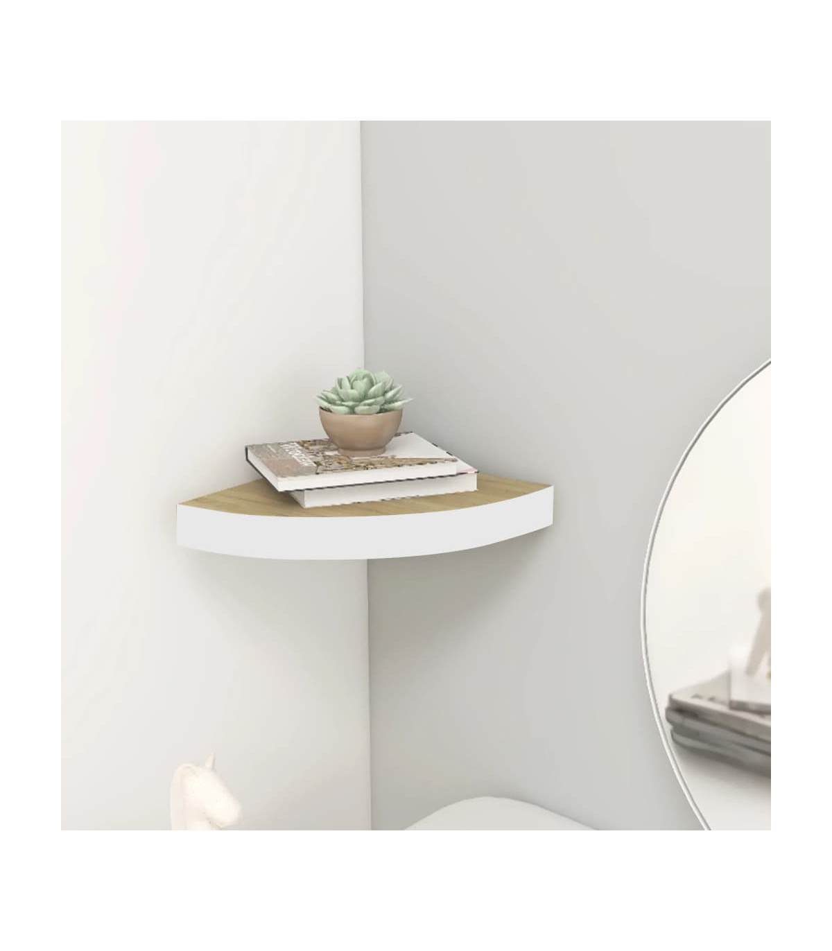 vidaXL Wall Corner Shelf Oak and White 25x25x3.8 cm MDF