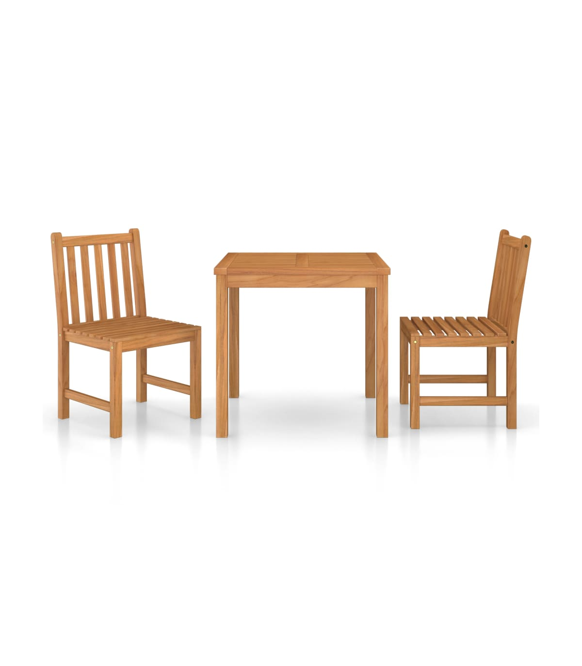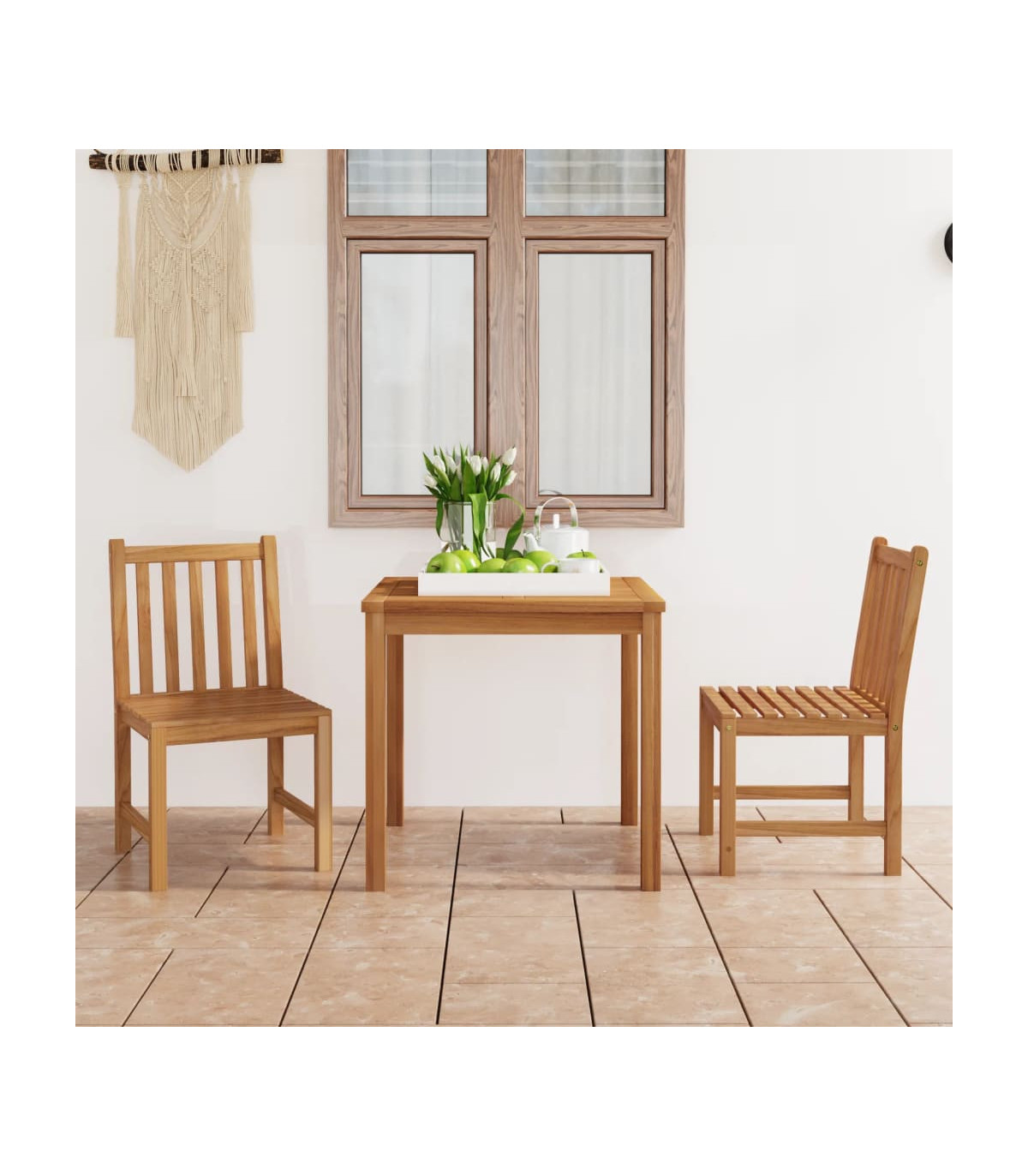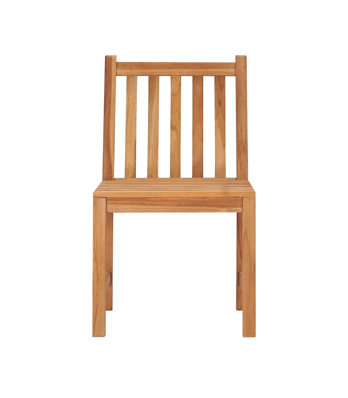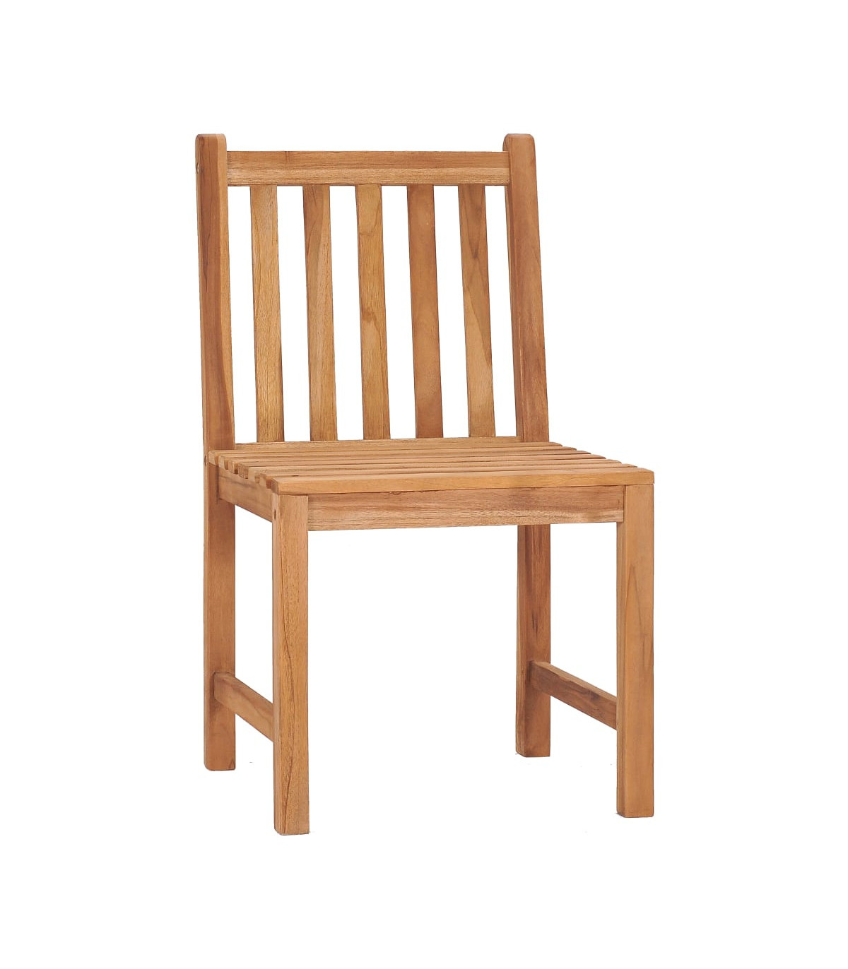 This solid wooden dining set with a water-based finish will add a touch of natural charm to your kitchen, garden or patio. Constructed from extremely durable teak hard wood, this piece of teak furniture has been seasoned, kiln dried and then fine sanded to give a very smooth appearance. Teak wood is known for its exceptional strength and weather resistance, making it far more suitable for garden furniture than any other kind of wood. Teak wood is the perfect choice if you want to purchase a long lasting piece of garden furniture. A beautiful water-based finish is applied to give the wood a warm colour. Thanks to the extra thick tabletop (3 cm) and big legs (5x5 cm), this solid wood table is very durable and can comfortably accommodate your guests. With its water-resistant feature and classic look, you can place this set of furniture anywhere around your sweet home – indoors or outside! Our dining set is easy to assemble. Delivery includes 1 table and 4 chairs.