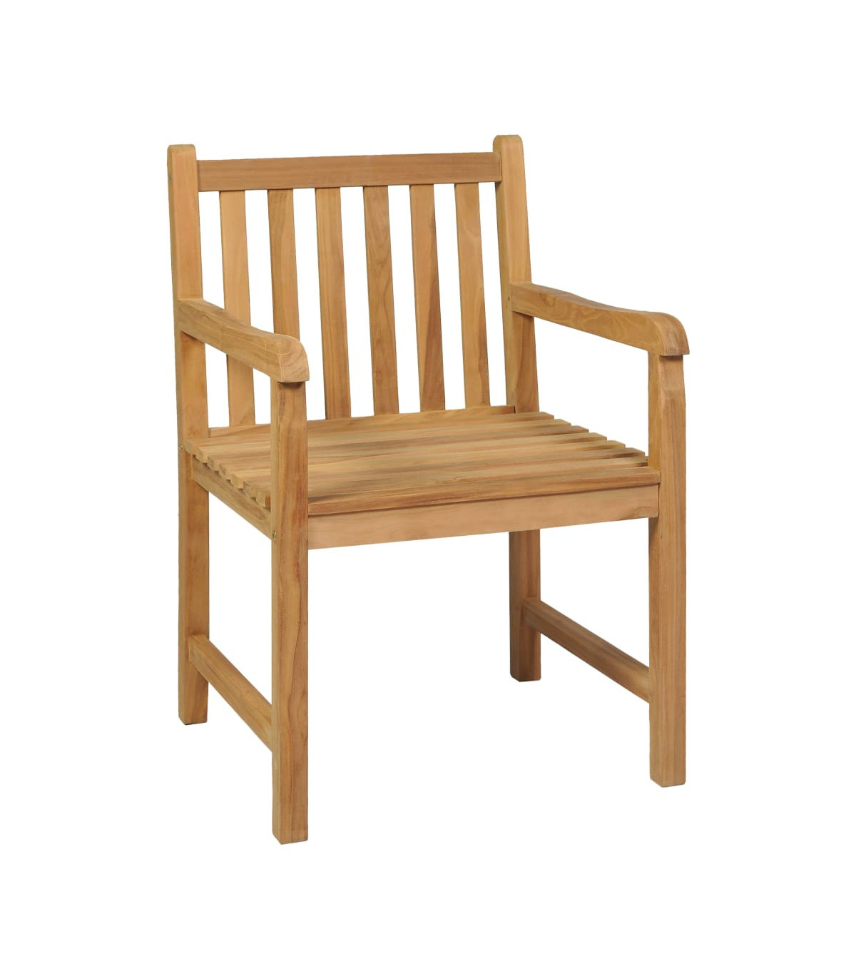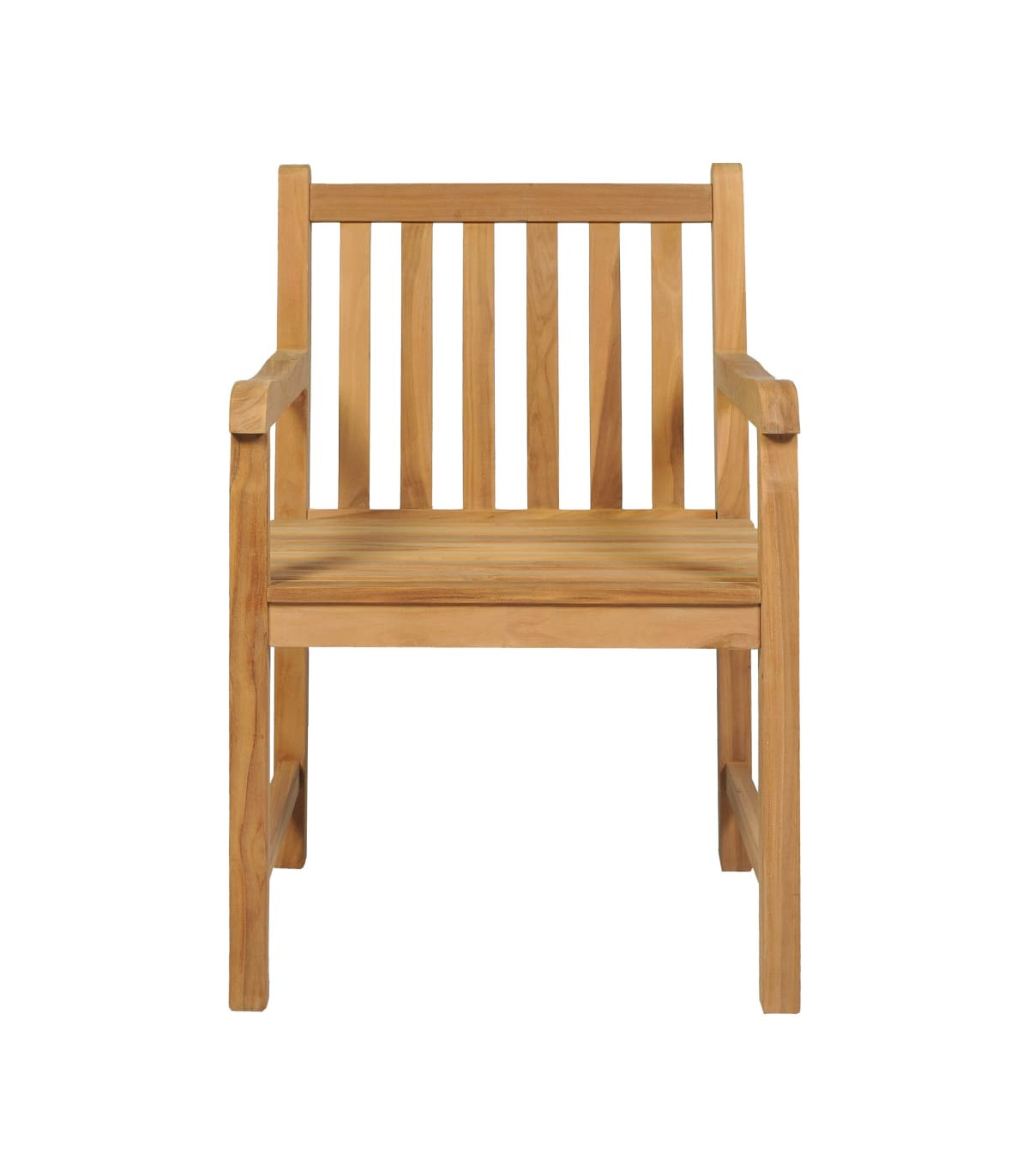 This solid wooden dining set with a water-based finish will add a touch of natural charm to your kitchen, garden or patio. Constructed from extremely durable teak hard wood, this piece of teak furniture has been seasoned, kiln dried and then fine sanded to give a very smooth appearance. Teak wood is known for its exceptional strength and weather resistance, making it far more suitable for garden furniture than any other kind of wood. Teak wood is the perfect choice if you want to purchase a long lasting piece of garden furniture. A beautiful water-based finish is applied to give the wood a warm colour. Thanks to the extra thick tabletop (3 cm) and big legs (5x5 cm), this solid wood table is very durable and can comfortably accommodate your guests. With its water-resistant feature and classic look, you can place this set of furniture anywhere around your sweet home – indoors or outside! Our dining set is easy to assemble. Delivery includes 1 table and 4 chairs.
