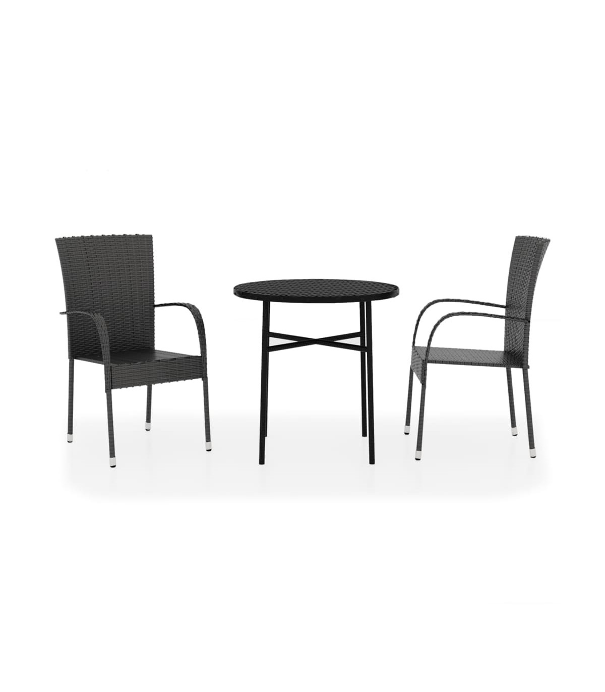 vidaXL 3 Piece Garden Dining Set Poly Rattan Black