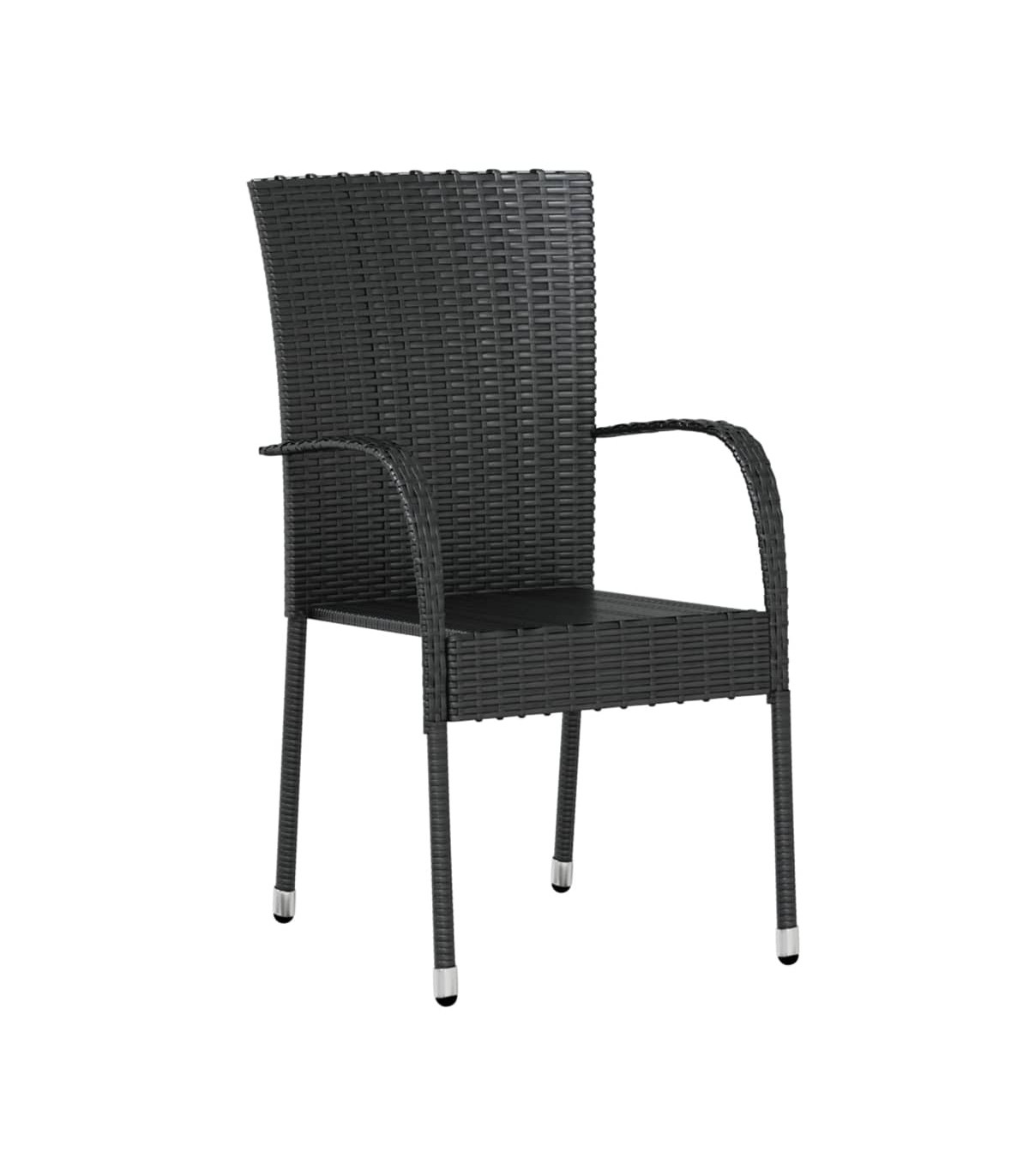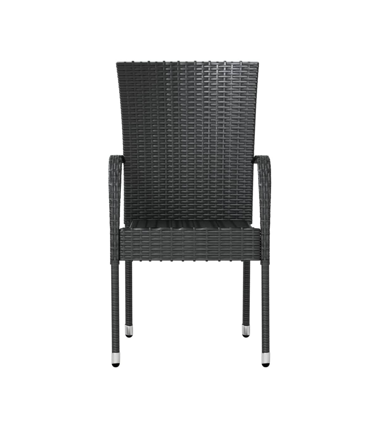 Enjoy a nice meal or afternoon tea in your outdoor space with this poly rattan garden dining set! Featuring an elegant design, it will become the focal point of your garden and patio! The practical outdoor dining set has a powder-coated steel frame covered with PE rattan, making it hardwearing, easy to clean, and suitable for daily outdoor use. The table is excellent for keeping drinks and food within reach. The chairs are lightweight and can be stacked to save space when not in use. Note: In order to extend the life of your outdoor furniture, we recommend you to clean it regularly and do not leave it outdoors without protection unnecessarily.Clean: Use a mild soap solution.Storing: If possible, store in a cool, dry place indoors. If the product is stored outdoors, protect it with a waterproof cover. Wipe and dry the excess water or snow from flat surfaces after a rain or snowfall. Allow sufficient air circulation to avoid moisture-related damage.