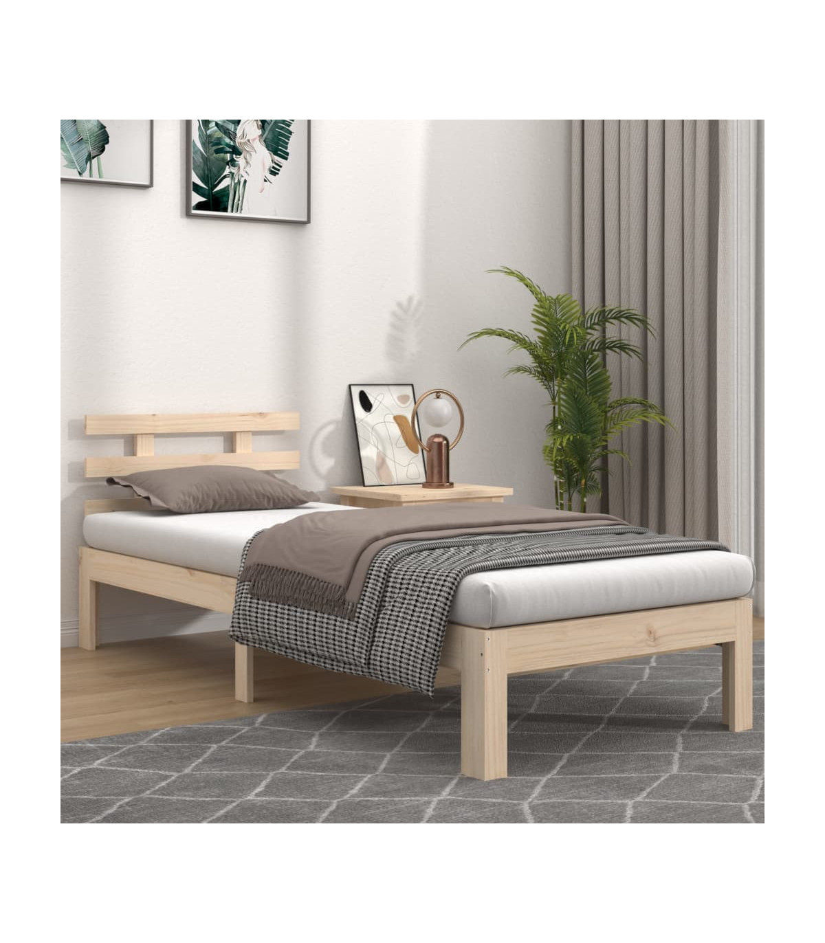 Enjoy a good night's sleep in this wooden bed frame! It makes a practical and decorative addition to your interior. Solid pine wood: Solid pine wood is a beautiful natural material. Pine wood has a straight grain, and the knots give the material its signature, rustic look. Made of solid pinewood, this bed is sturdy and durable.Sturdy bed frame: The wooden frame ensures sturdiness and stability. The plywood slats provide good weight distribution, ensuring that the mattress stays in place with every twist and turn of your body during sleep.Comfortable headboard: The classic headboard lets you rest comfortably while reading or watching a movie. Good to know:A mattress is not included with this bed. We do offer a various selection of mattresses. You can check our shop for a matching mattress.