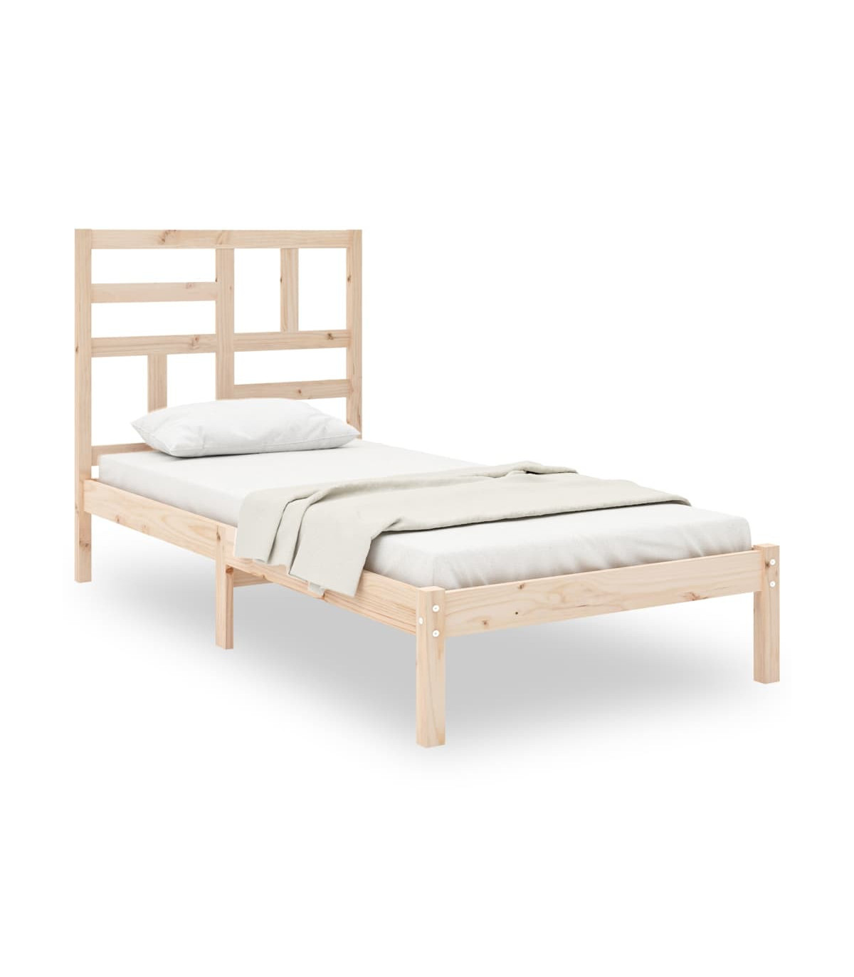 Take the modern route to your bedroom with this wooden bed frame! It makes a practical and decorative addition to your interior. Premium solid wood: Solid pine wood is a beautiful natural material. Pine wood has a straight grain, and the knots give the material its signature, rustic look.Sturdy bed frame: The wooden frame ensures sturdiness and stability. The plywood slats provide good weight distribution, ensuring that the mattress stays in place with every twist and turn of your body during sleep.Comfortable headboard: The classic headboard lets you rest comfortably while reading or watching a movie.Suitable condition: This single bed is a great solution for small spaces, multi-functional rooms, single sleepers and older children. Whatever your needs or decor plans are, the single bed meets all your needs! Note:The delivery includes a bed frame only. The mattress is not included. You can check our shop for the matching mattresses.This bed frame is suitable for a mattress measuring 75 x 190 cm (2FT6 Small Single).