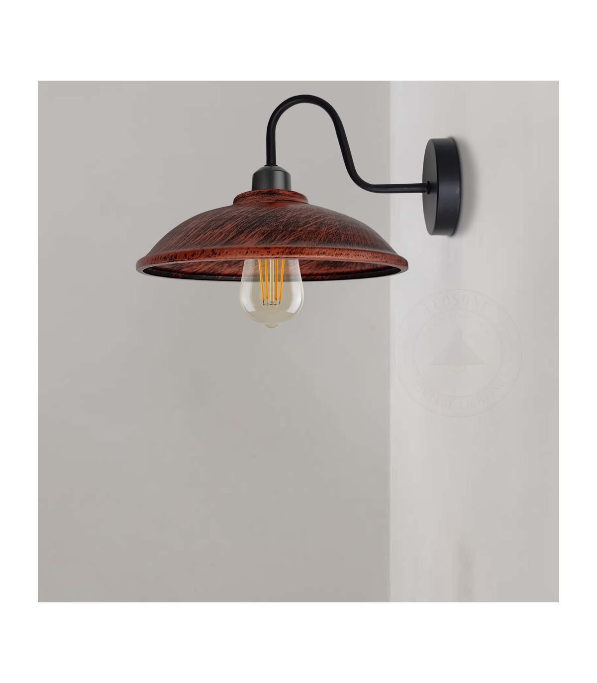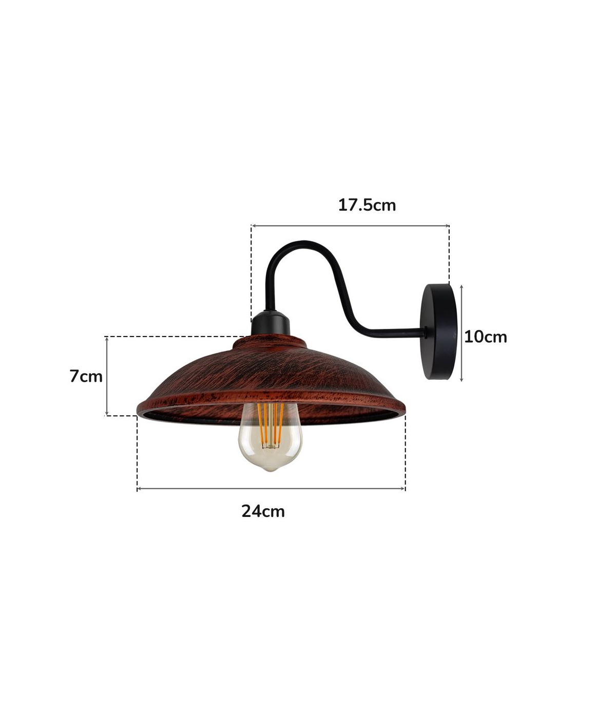 Features: The Hemisphere-shaped wall light is inspired by simple yet functional lamps. In addition to the bright and warm lighting, we also pursue a kind of elegant aesthetic feeling and sophisticated retro craft. If the lamp is used with a compatible dimmer switch, it can be dimmed to provide the desired level of illumination. These fixtures have a standard E27 base, which means they can accommodate most types of bulbs with an E27 base. Perfect for indoor lighting, barn, restaurant, kitchen, entryway, hallway, stairway, etc. Specifications: Lamp type: wall lamp Style: Vintage Material: Metal Shade : 24cm Width x 7cm Height Ceiling rose: 10cm W x 2.5cm H Arm length: 17.5cm voltage: 110-240V Bulb Base: E27 Warranty: 3 years Certification: CE, RoHS Dimmable: Yes (With dimmable bulb and with dimmer switch) Bulb Requirements: Requires E27 max 60W Bulb Type: Compatible with all kinds of E27 Bulbs Installation Area: Indoor Power Source: Hardwired Energy consumption: A+ with LED bulb