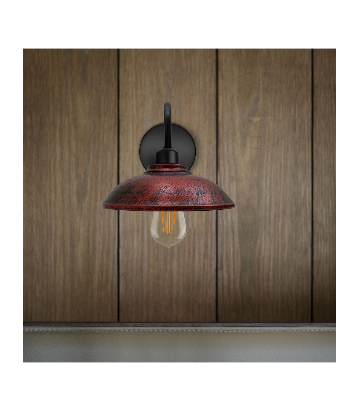 Rustic Red Wall Light Fixture, Vintage Black Wall Sconce E27 Base Socket Screw Wall Swan Neck Hemisphere Shape Shade