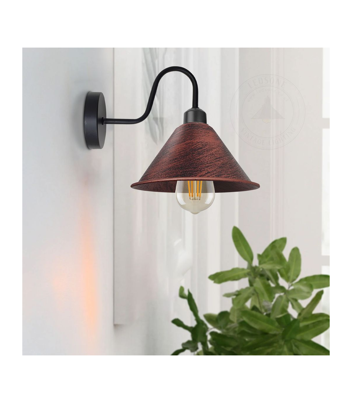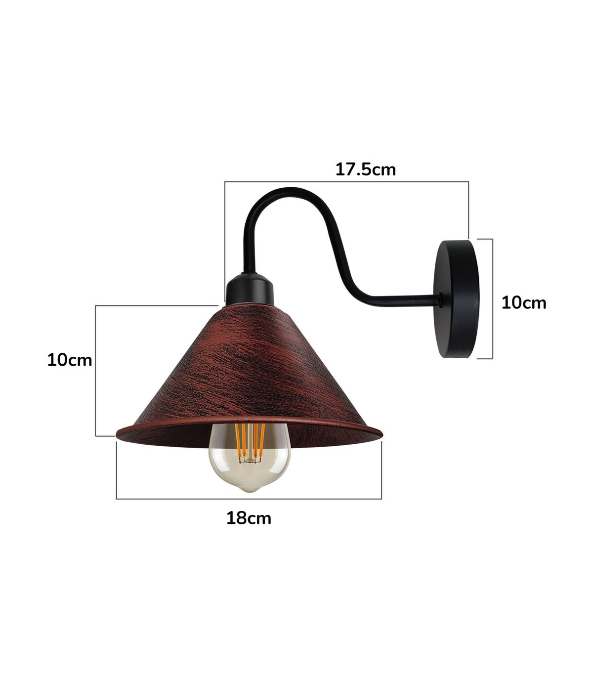 Features:The cone-shaped wall light is inspired by simple yet functional lamps. In addition to the bright and warm lighting, we also pursue a kind of elegant aesthetic feeling and sophisticated retro craft. If the lamp is used with a compatible dimmer switch, it can be dimmed to provide the desired level of illumination.These fixtures have a standard E27 base, which means they can accommodate most types of bulbs with an E27 base.Perfect for indoor lighting, barn, restaurant, kitchen, entryway, hallway, stairway, etc.Specifications:Lamp type: wall lampStyle: VintageMaterial: MetalShade : 18cm Width x 10cm HeightCeiling rose: 10cm Width x 2.5cm HeightArm length: 17.5cmvoltage: 110-240VBulb Base: E27Warranty: 3 yearsCertification: CE, RoHSDimmable: Yes (With dimmable bulb and with dimmer switch)Bulb Requirements: Requires E27 max 60WBulb Type: Compatible with all kinds of E27 BulbsInstallation Area: IndoorPower Source: HardwiredEnergy consumption: A+ with LED bulb
