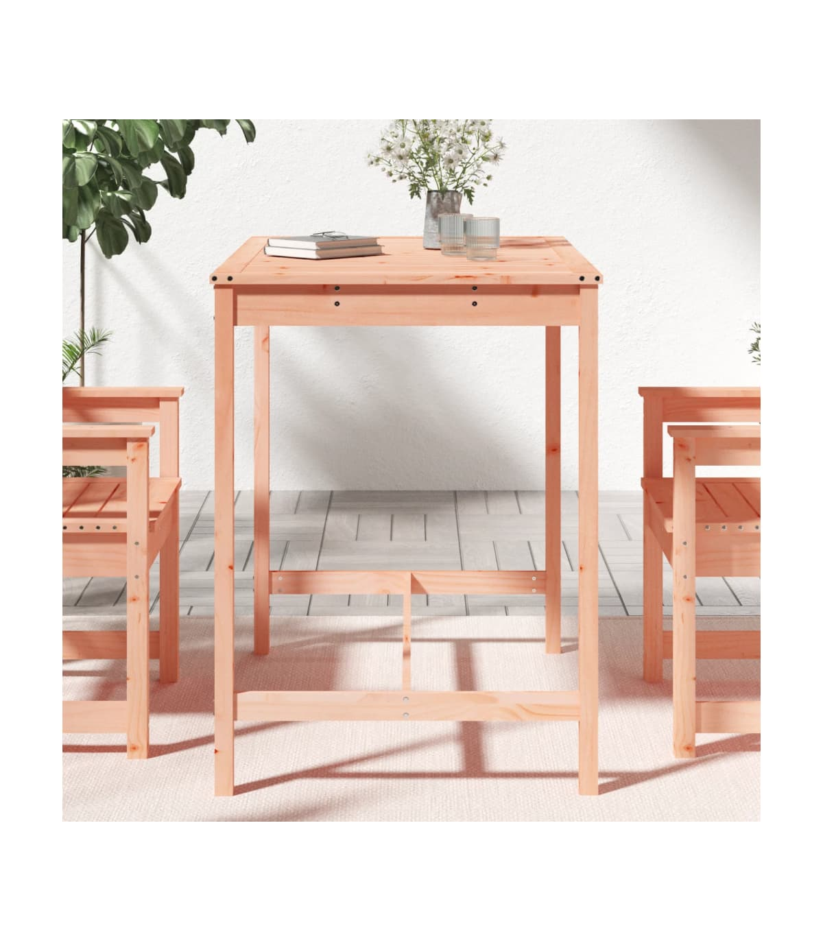 This classic wooden garden table is perfect for outdoor use and is designed to be the focal point of your garden, terrace or patio, etc. Solid pine wood: The outdoor table is made of solid pine wood. Solid pine wood is a beautiful natural material. Pine wood has a straight grain, and the knots give the material its signature, rustic look.Stable frame: The wooden frame ensures sturdiness and stability. Sturdy tabletop: The tabletop offers excellent support for holding your drinks, snacks, fruit baskets, and your favourite decorations.Wide applications: The patio table with its simple and timeless design is suitable for placing on balconies, gardens, patios, etc. Good to know:To make assembly as easy as possible, each product is delivered with a manual. Note:To make sure your outdoor furniture stays beautiful, we recommend protecting it with a waterproof cover.