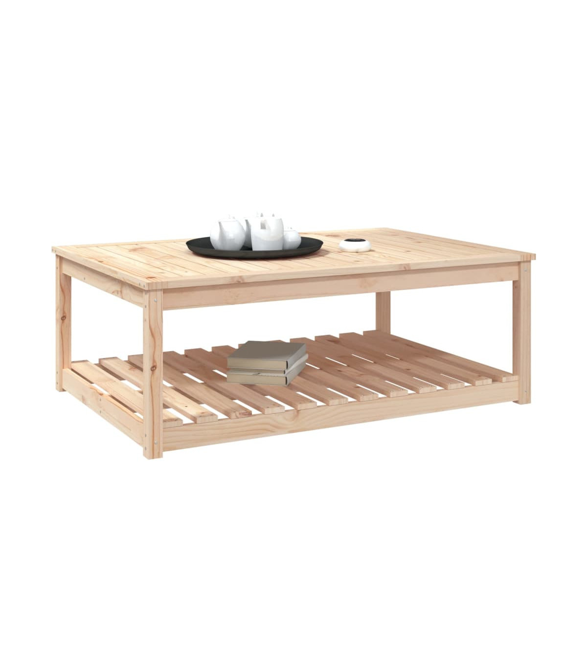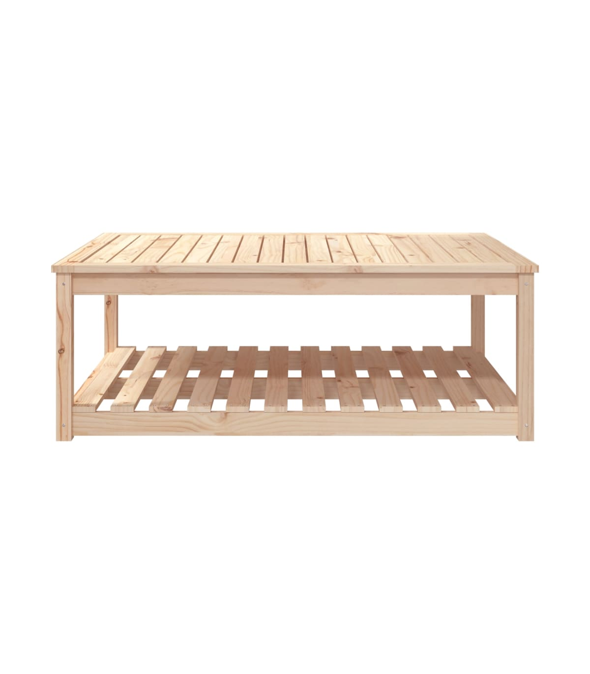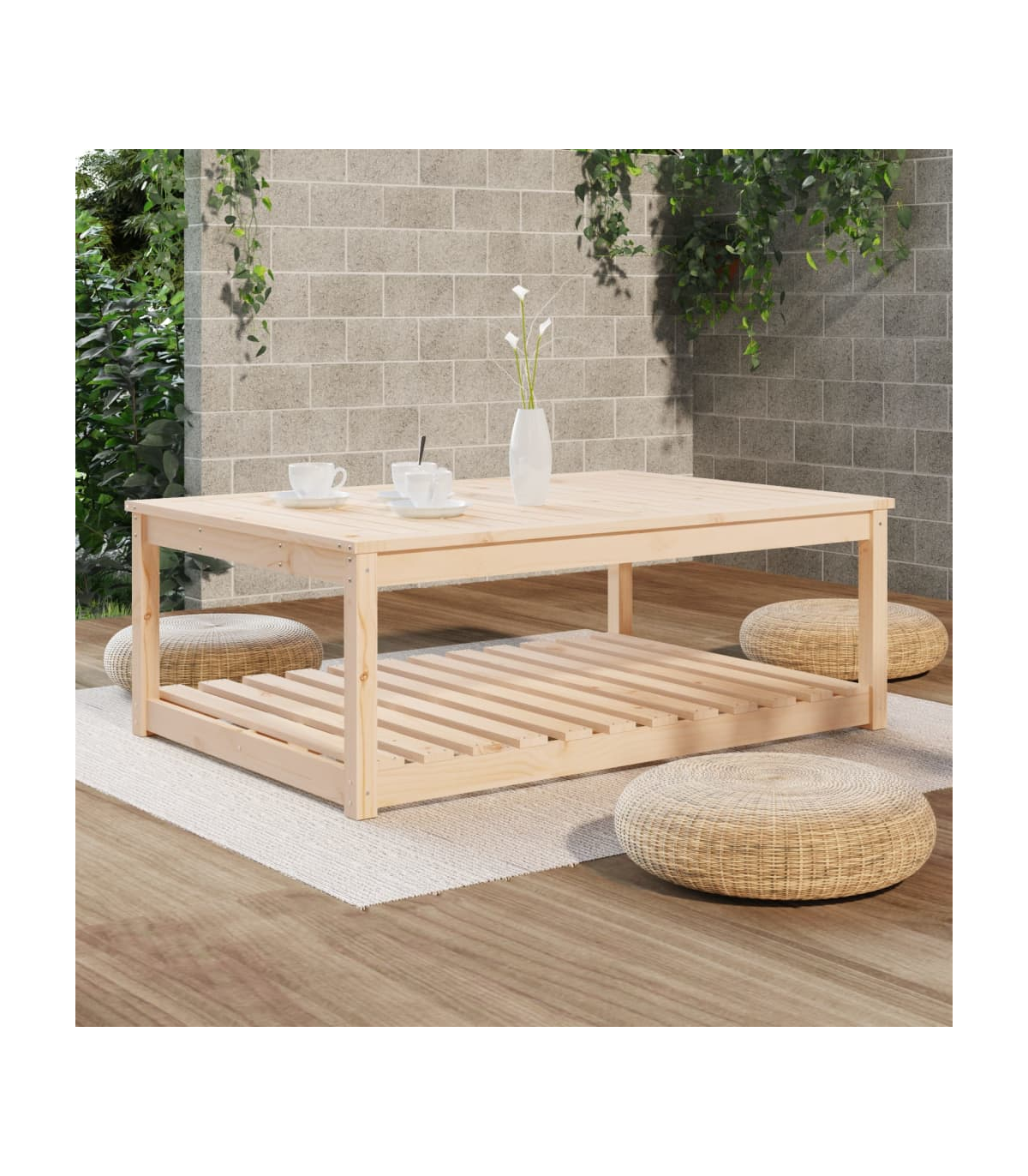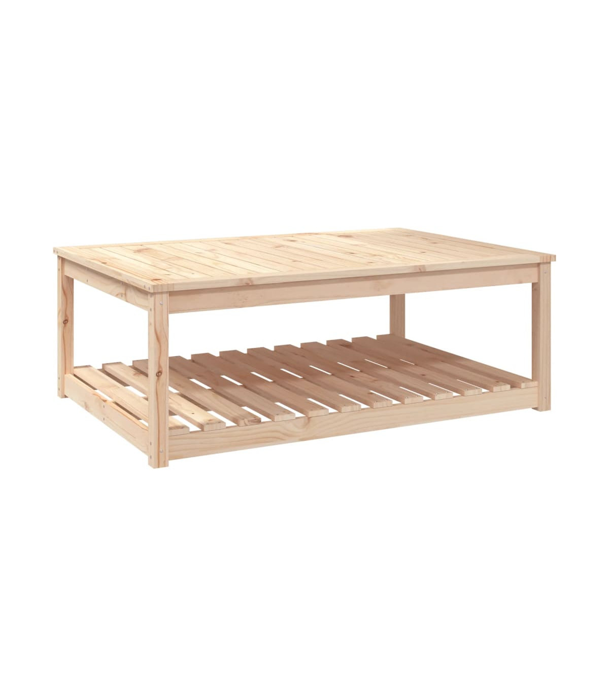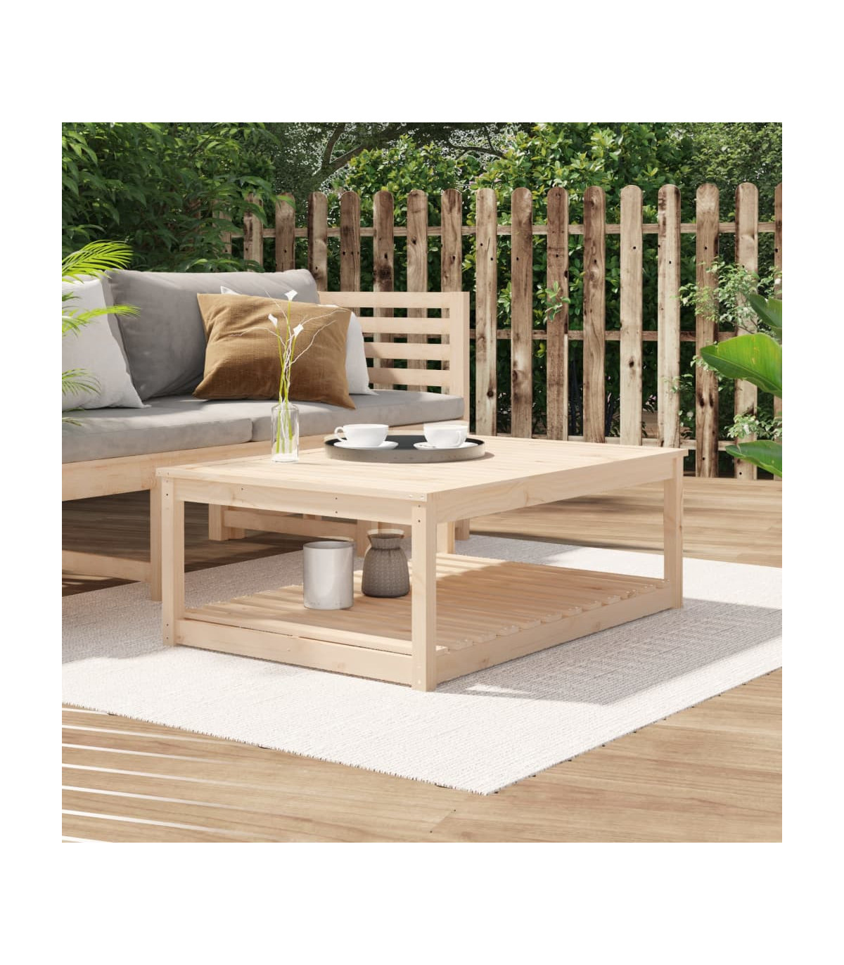 Enjoy a nice meal with your family and friends around this wooden garden table! It will bring a touch of rustic charm to your patio, garden, or terrace. Solid pine wood: Solid pine wood is a beautiful natural material. Pine wood has a straight grain, and the knots give the material its signature, rustic look.Stable tabletop: The tabletop offers excellent support for holding your drinks, snacks, fruit baskets, and your favourite decorations.Extra storage space: The patio table is designed with an open shelf that provides extra storage space for keeping your various daily essentials well-organised and within easy reach.Sturdy frame: The wooden frame ensures the sturdiness and stability of the lounge table.Wide applications: The garden lounge table, with its remarkable design, creates a pleasant overall appearance that integrates effortlessly into any environment. Good to know:To make assembly as easy as possible, each product is delivered with a manual.Note:To make sure your outdoor furniture stays beautiful, we recommend protecting it with a waterproof cover.