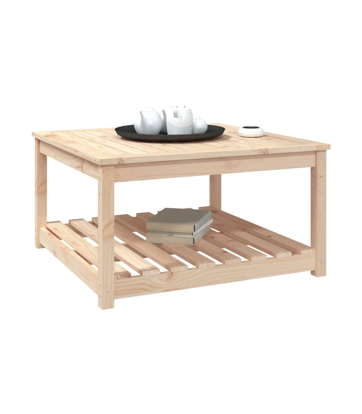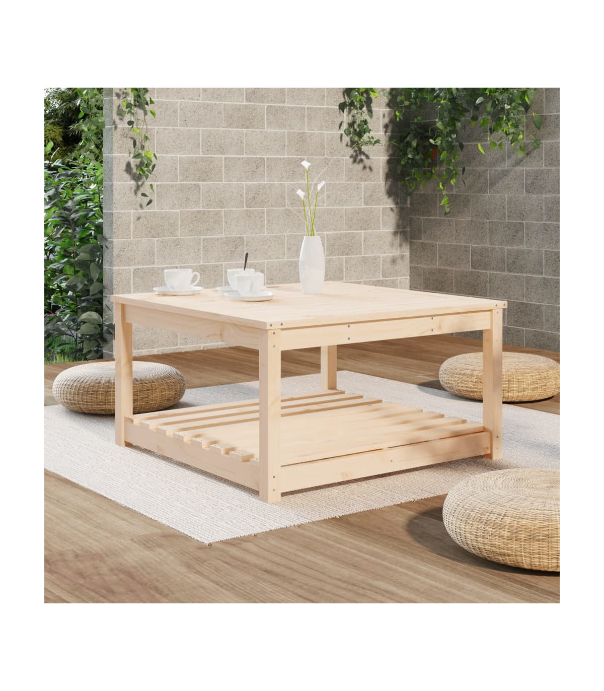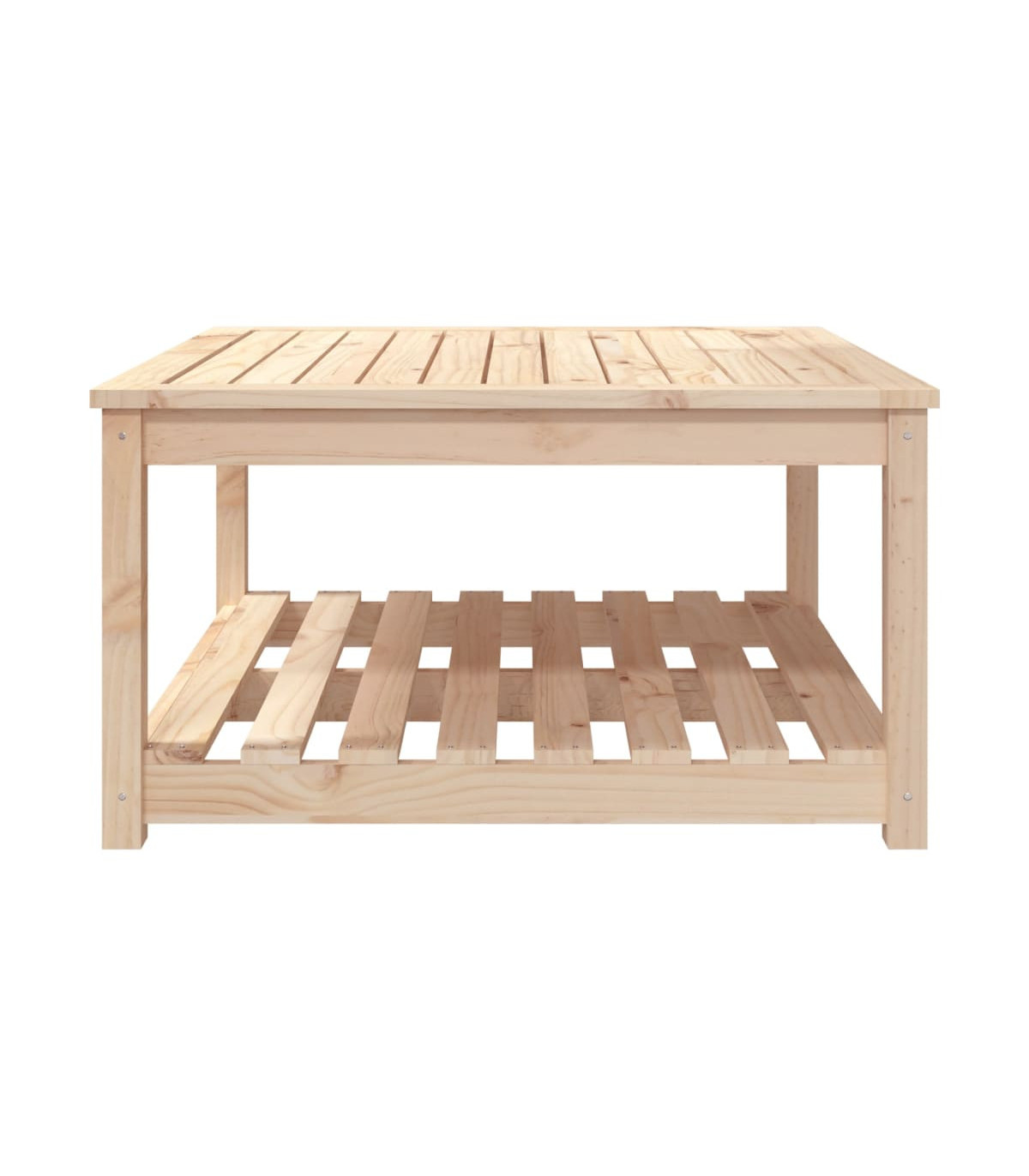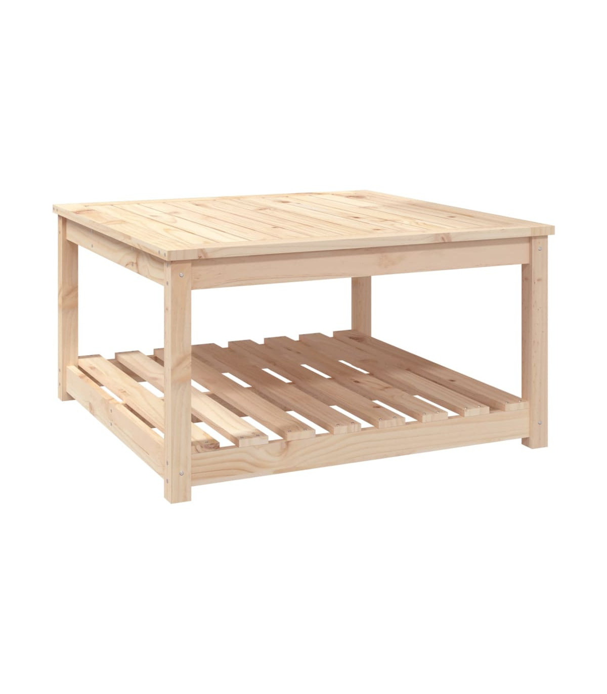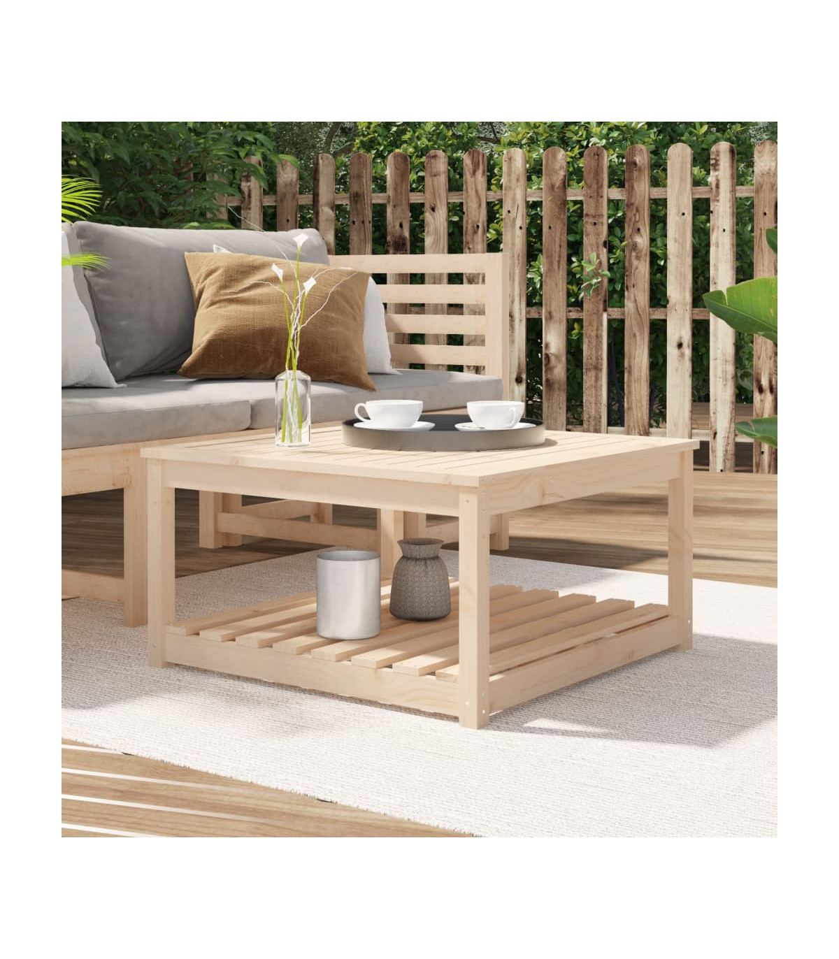 Enjoy a nice meal with your family and friends around this wooden garden table! It will bring a touch of rustic charm to your patio, garden, or terrace. Solid pine wood: Solid pine wood is a beautiful natural material. Pine wood has a straight grain, and the knots give the material its signature, rustic look.Stable tabletop: The tabletop offers excellent support for holding your drinks, snacks, fruit baskets, and your favourite decorations.Extra storage space: The patio table is designed with an open shelf that provides extra storage space for keeping your various daily essentials well-organised and within easy reach.Sturdy frame: The wooden frame ensures the sturdiness and stability of the lounge table.Wide applications: The garden lounge table, with its remarkable design, creates a pleasant overall appearance that integrates effortlessly into any environment. Good to know:To make assembly as easy as possible, each product is delivered with a manual.Note:To make sure your outdoor furniture stays beautiful, we recommend protecting it with a waterproof cover.
