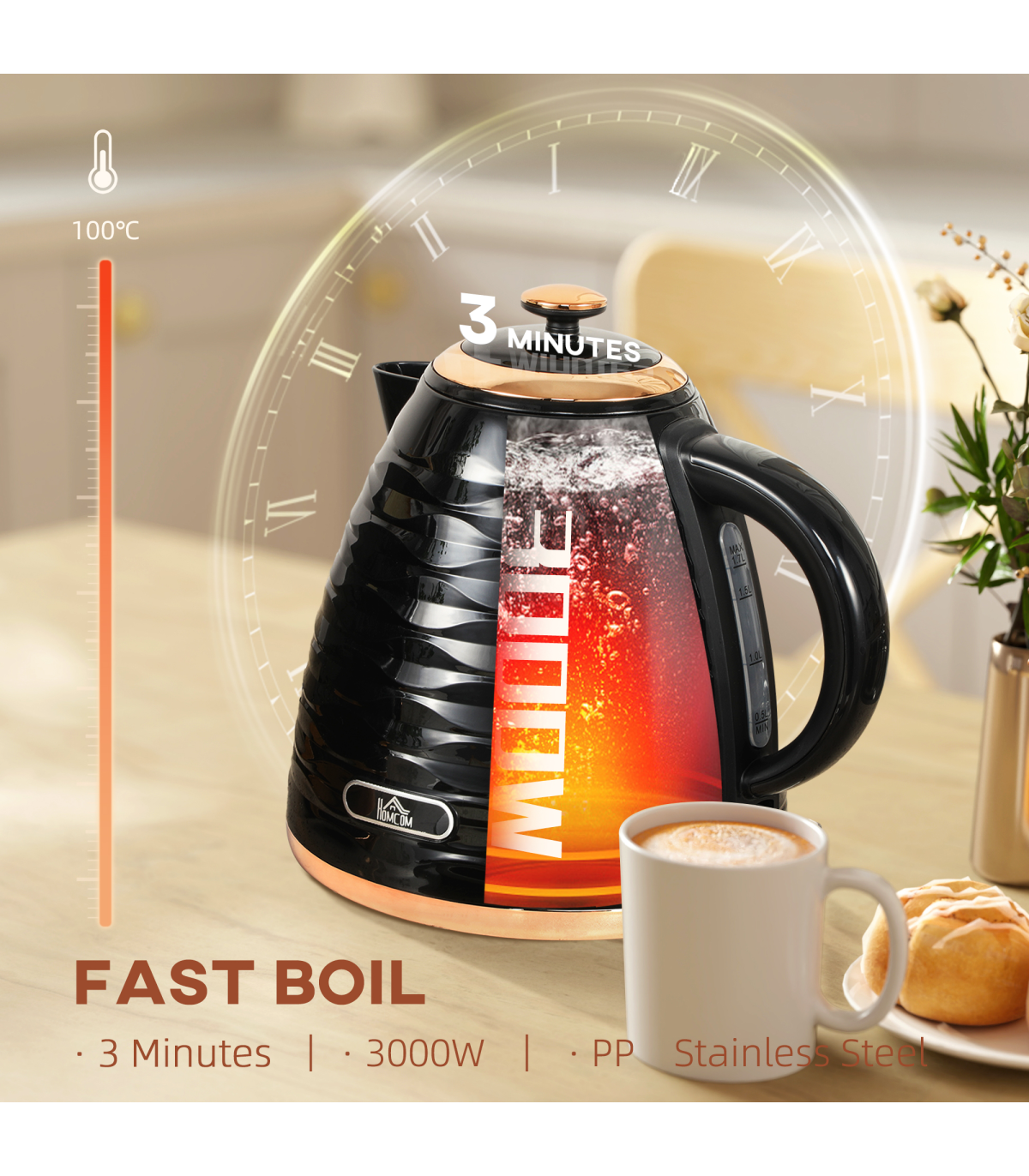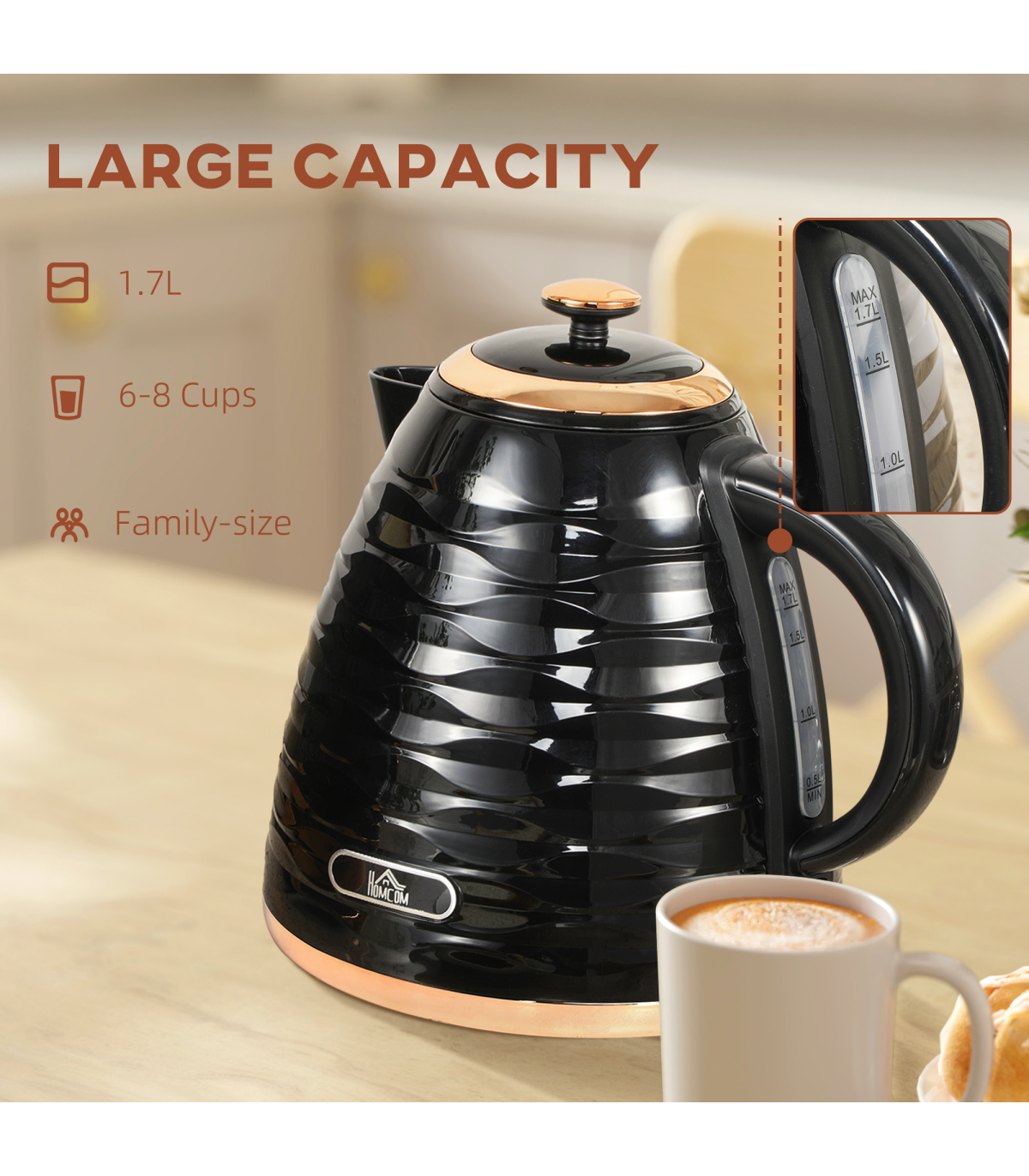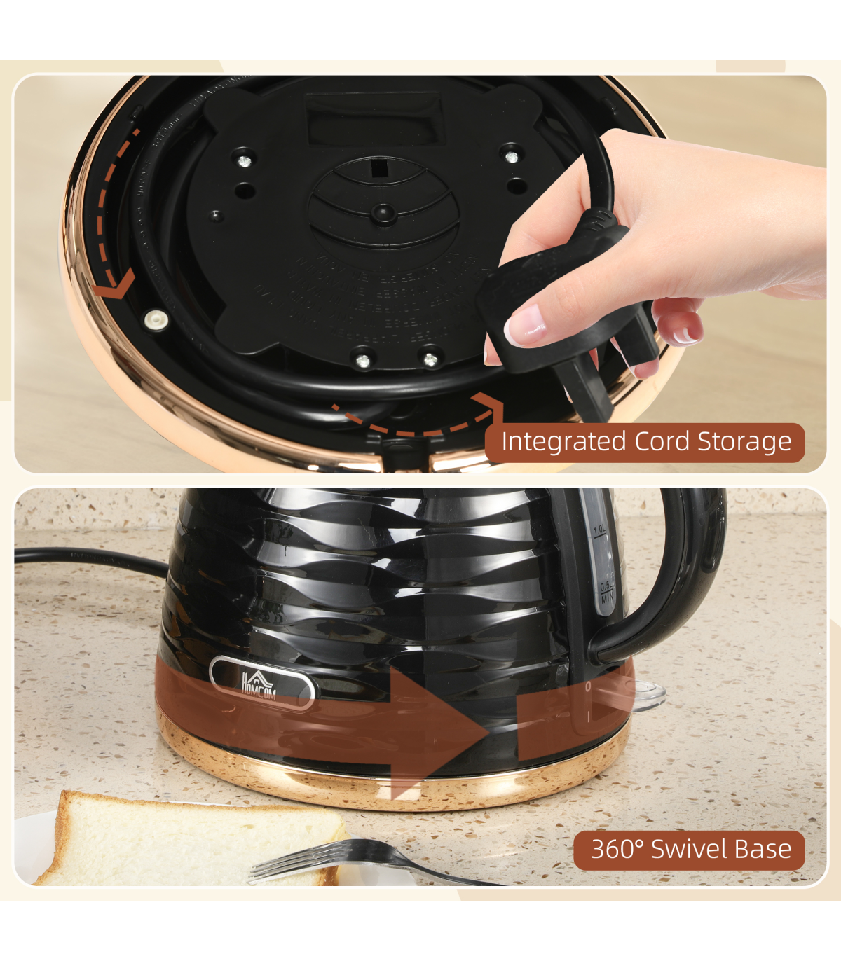 HOMCOM Electric Kettle, Fast Boil, 1.7L, 3kW, Swivel, Black Ripple
