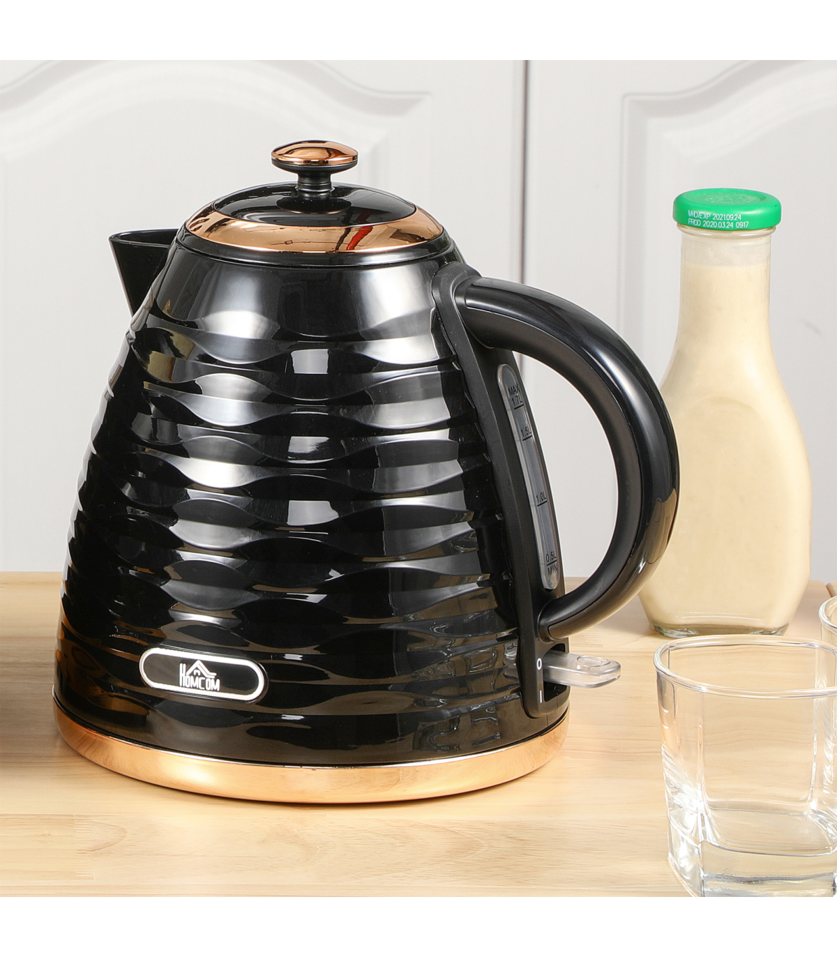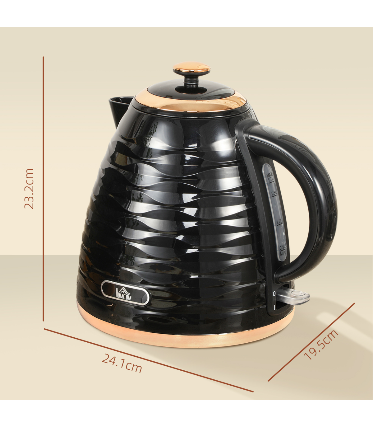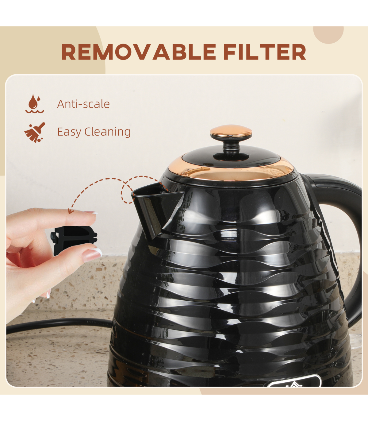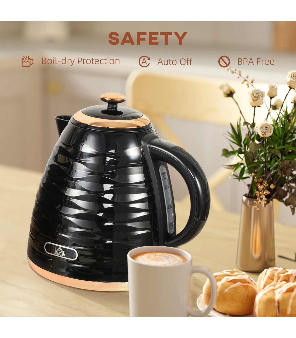 HOMCOM Electric Kettle, Fast Boil, 1.7L, 3kW, Swivel, Black Ripple