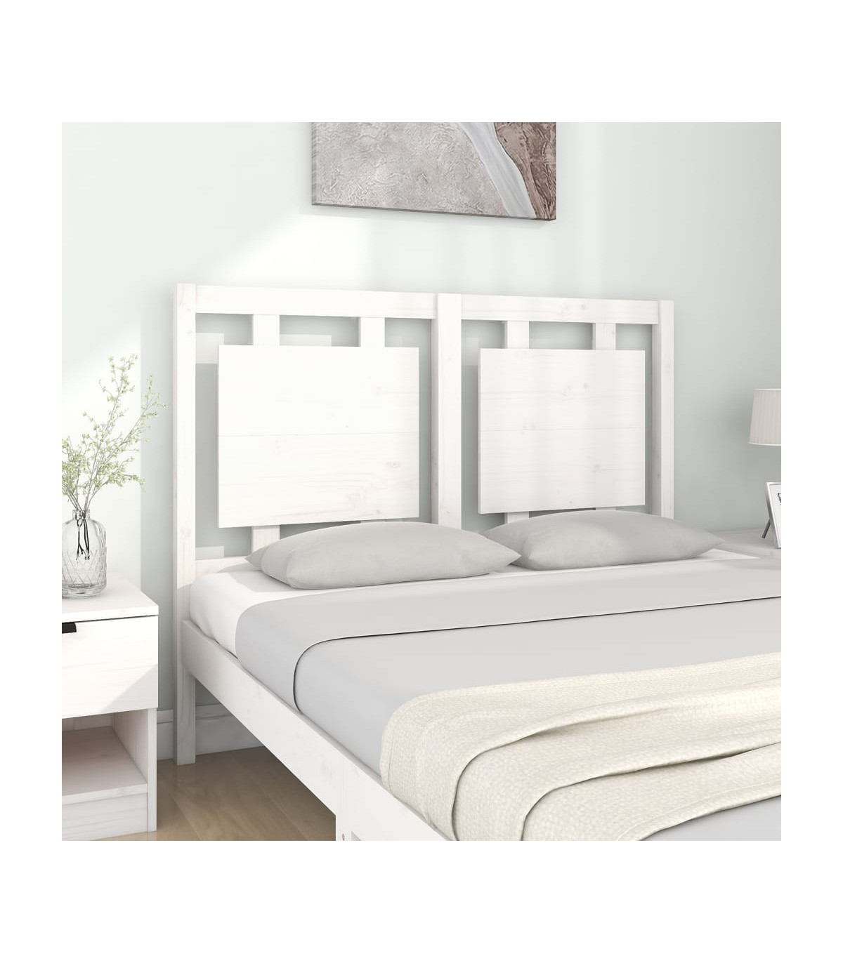 Bed Headboard White 125.5x4x100 cm Solid Pine Wood