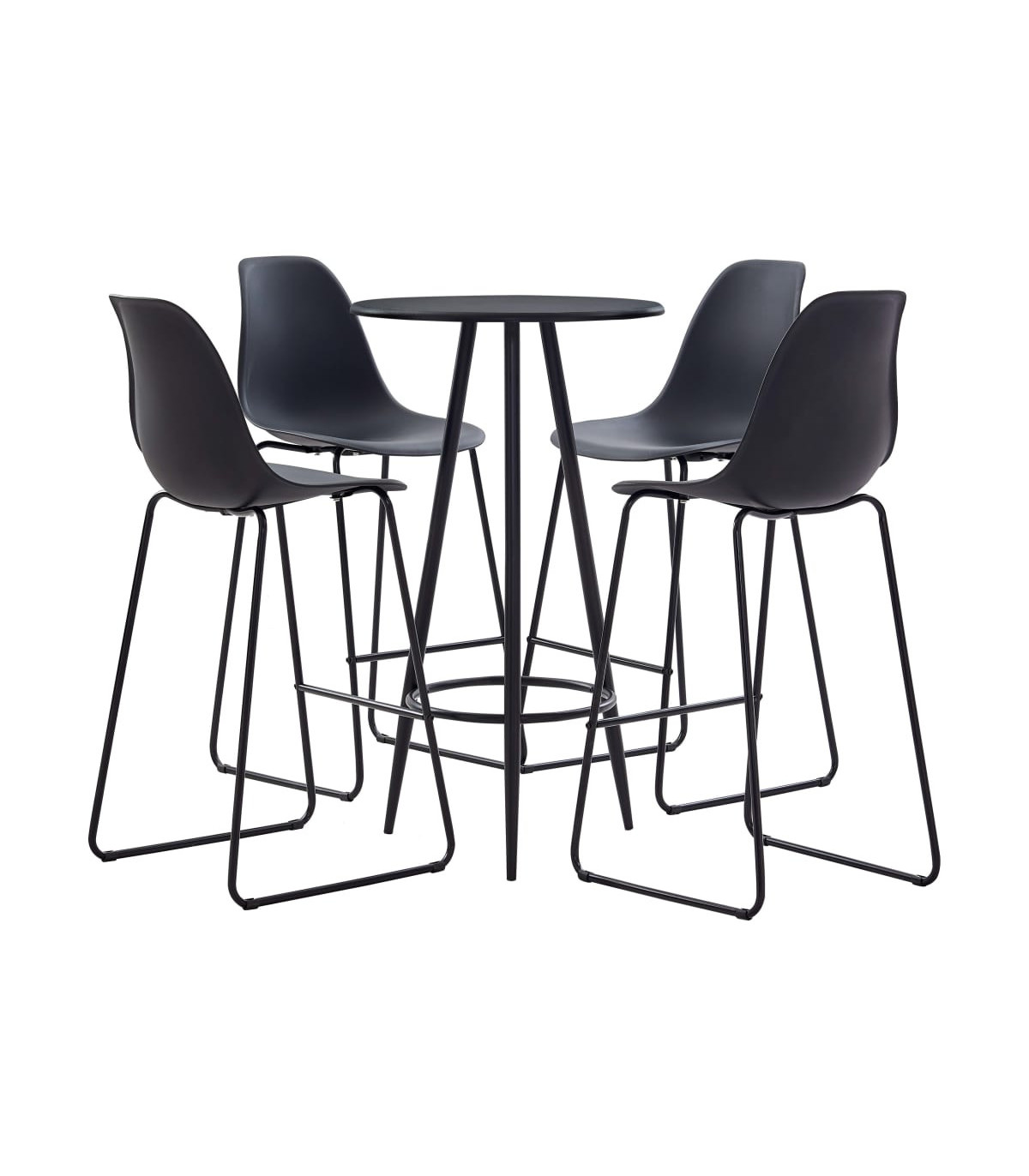 Featuring a modern and contemporary design, our bar set is perfect to go with any modern homes, gardens, bars, pubs, or restaurants.Its clean and contemporary design will complement any interior decor. The tabletop is made of MDF which is easy to clean. The powder-coated steel frame adds to the bar table's stability and sturdiness. The pub chairs have an ergonomically designed seat with integrated backrest in a modern, curved look. Additionally, they are easy to assemble. Our bar set is ideal for enjoying a few sips of wine in the bar, grabbing a bite at the counter, or for use as extra seats when you invite guests over. Delivery includes a bar table and 2 bar chairs.