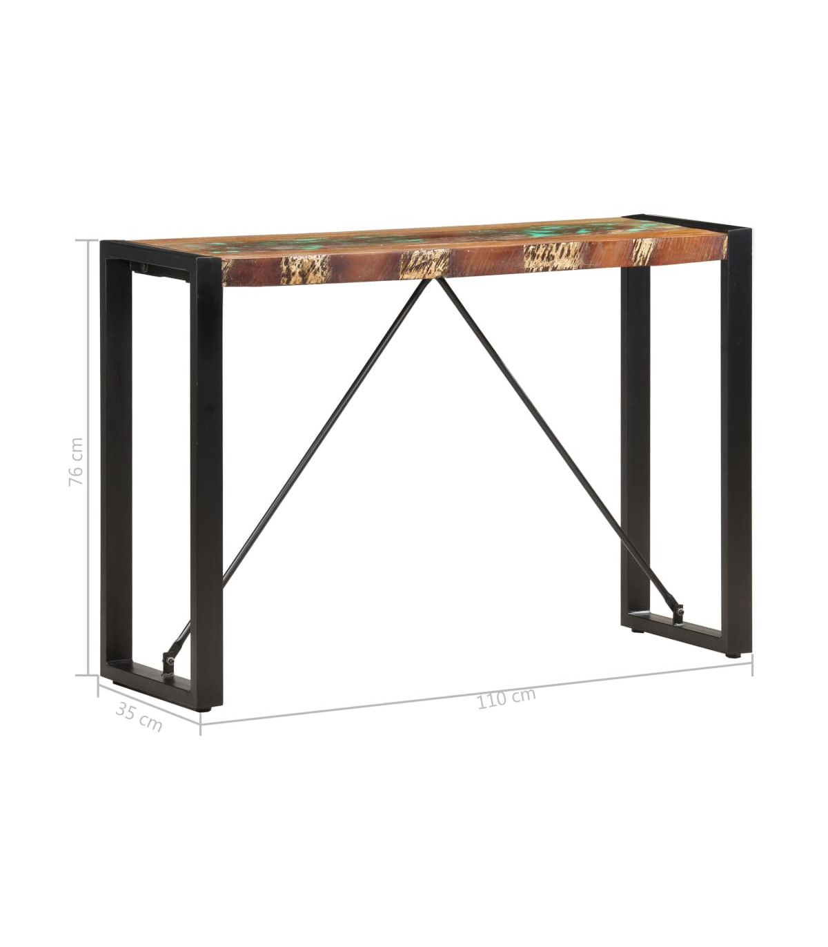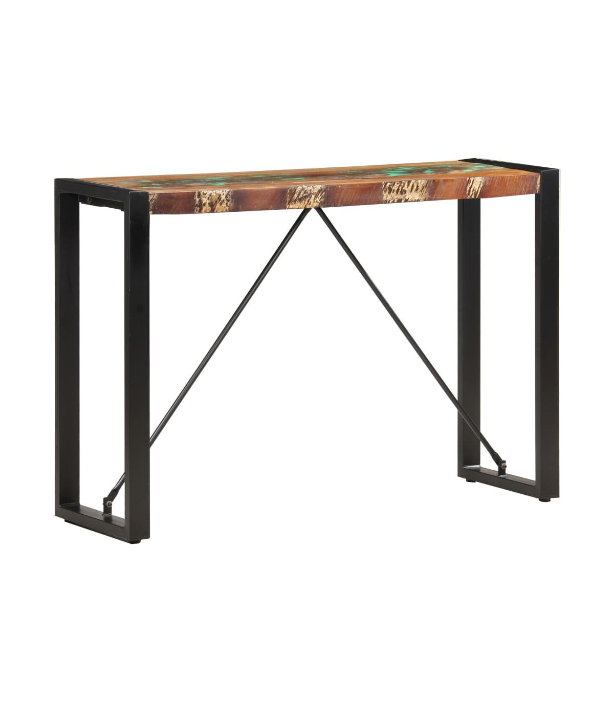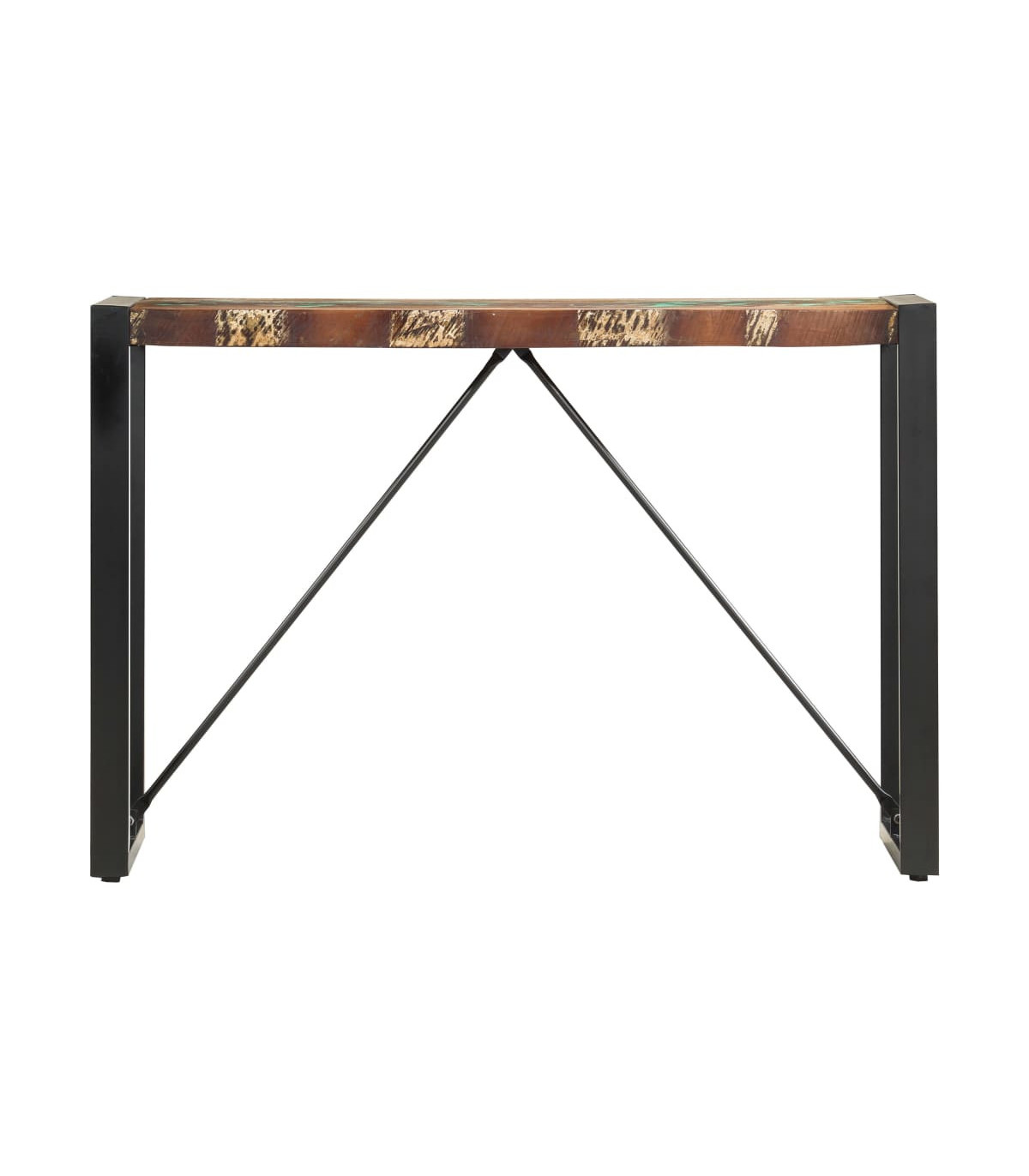 Introduce an air of industrial charm into your living space with our stylish solid wooden console table! The hall table is made of rough mango wood, a dense and robust hardwood featuring beautiful brown or golden streaks and contours on its surface. The exquisite craftsmanship and the graceful wood grains make every piece of furniture distinctive and slightly different from the next. Every step of the process is carried out with the greatest care, be it polishing, painting or lacquering. Additionally, its black powder-coated steel legs add to the table's stability as well as its industrial charm. Important note: Colours vary from piece to piece which make each of our side table unique. The delivery is random, ensuring the exclusivity and individuality of your product.