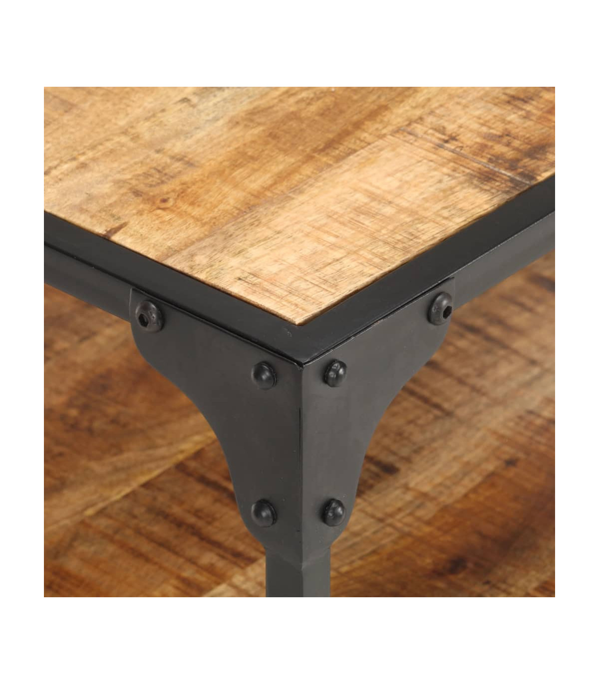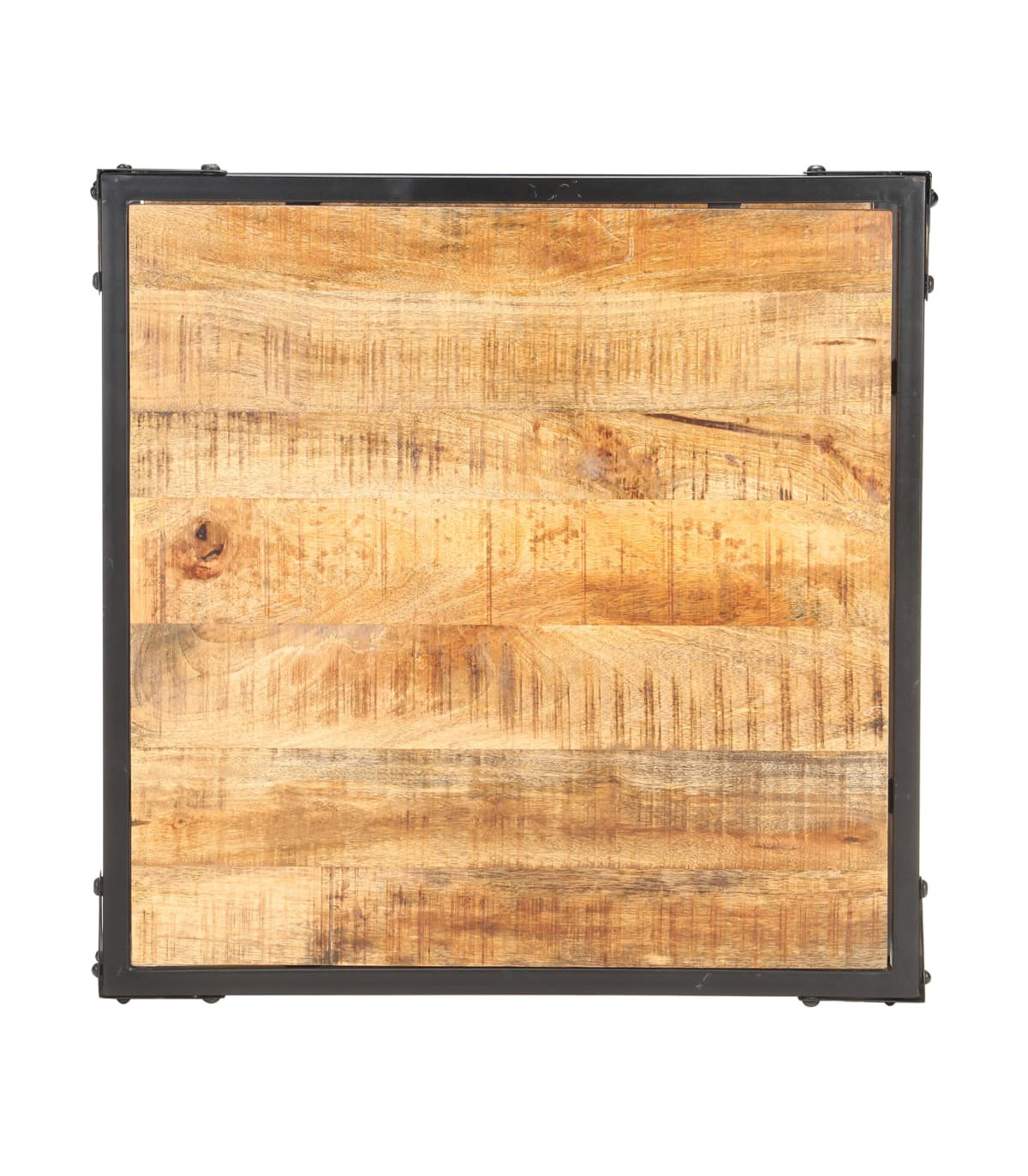 - Material: Solid acacia wood with a natural finish, black powder-coated iron