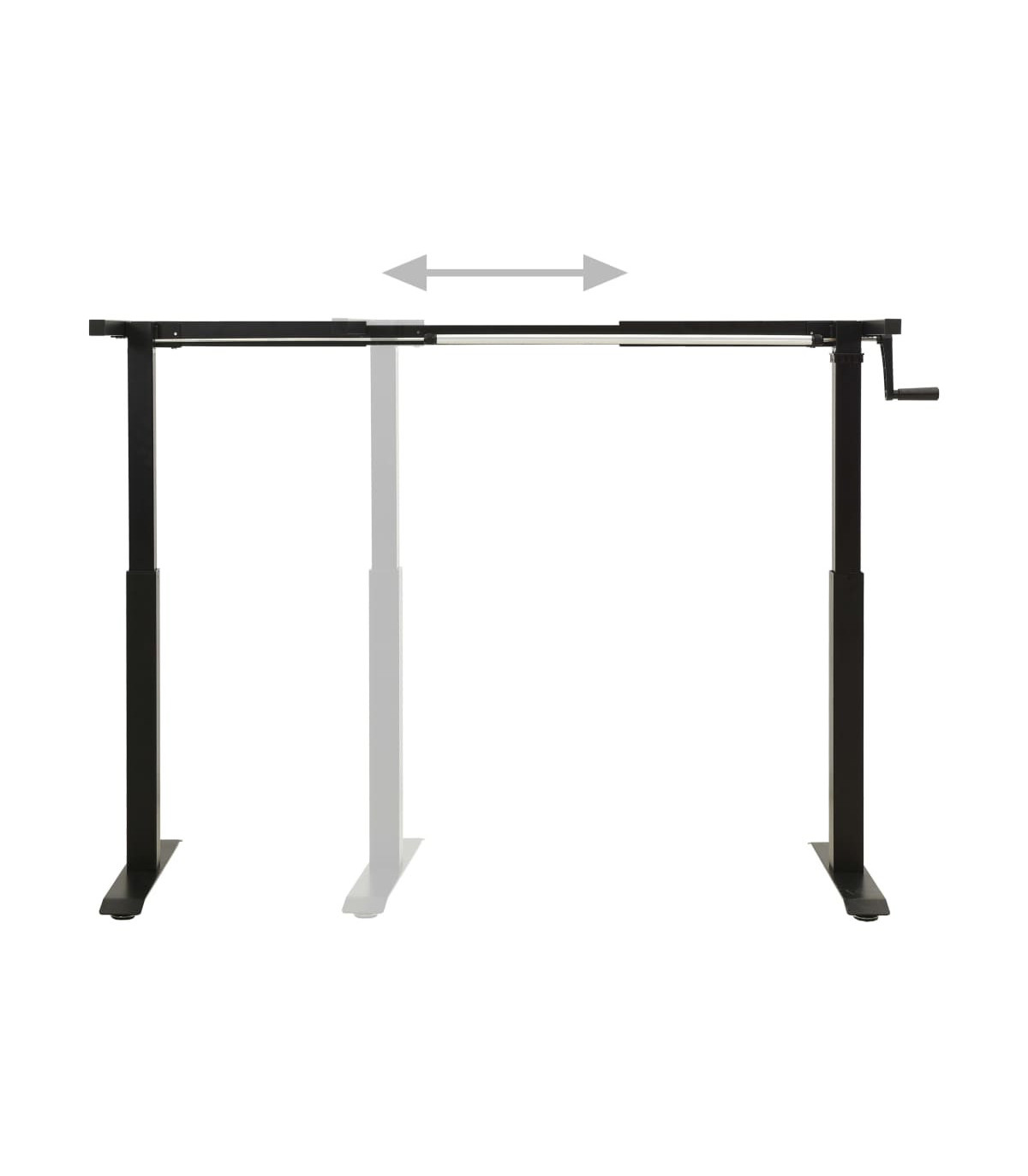 Sit or stand in seconds with our manual height and width adjustable desk frame! You can enjoy a healthy working style throughout the long day of work. This desk frame, made of powder-coated carbon steel, is stable. It has an adjustable width from 102-160 cm and height from 71-113 cm to meet your specific needs. This frame features a hand crank for easy and quick adjustment. It can be used with your desktop to fit your workspace perfectly. This frame is suitable for 120-180 cm table width and 60-80 cm depth.