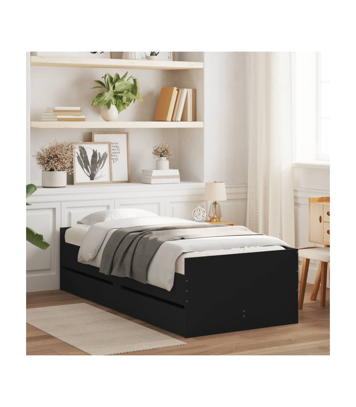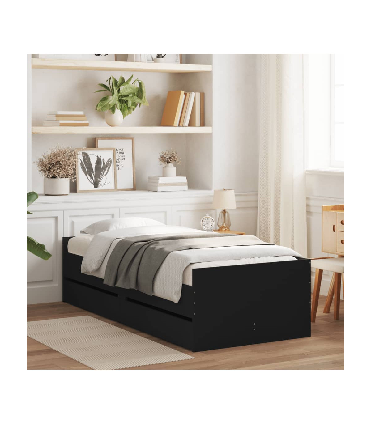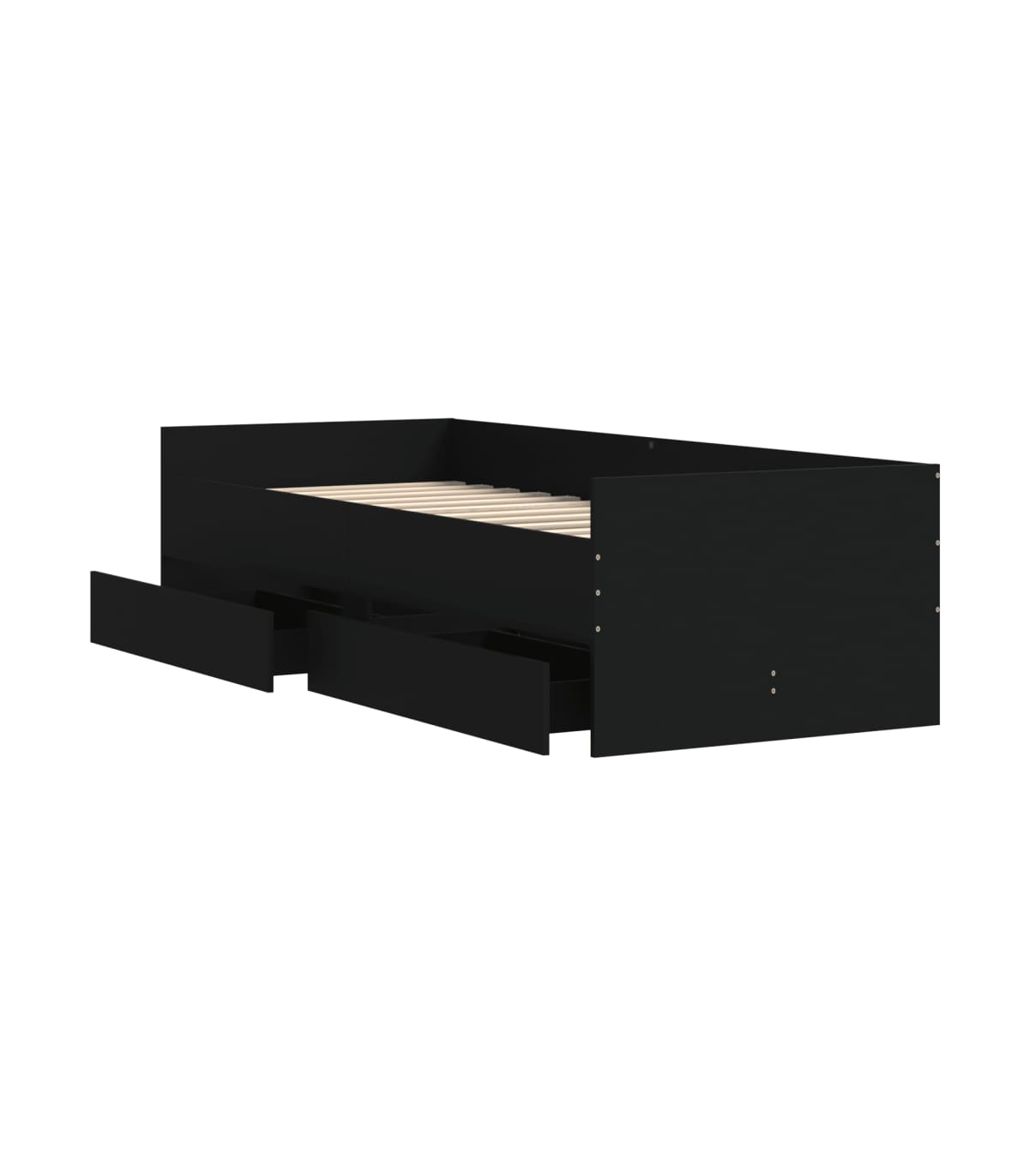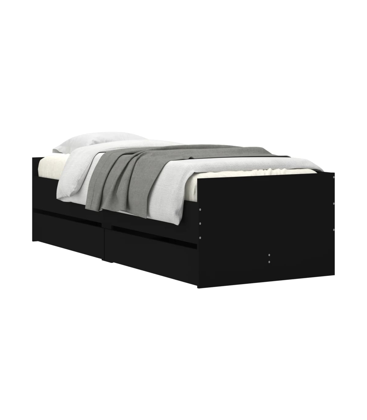 vidaXL Bed Frame with Drawers Black 75x190 cm Small Single