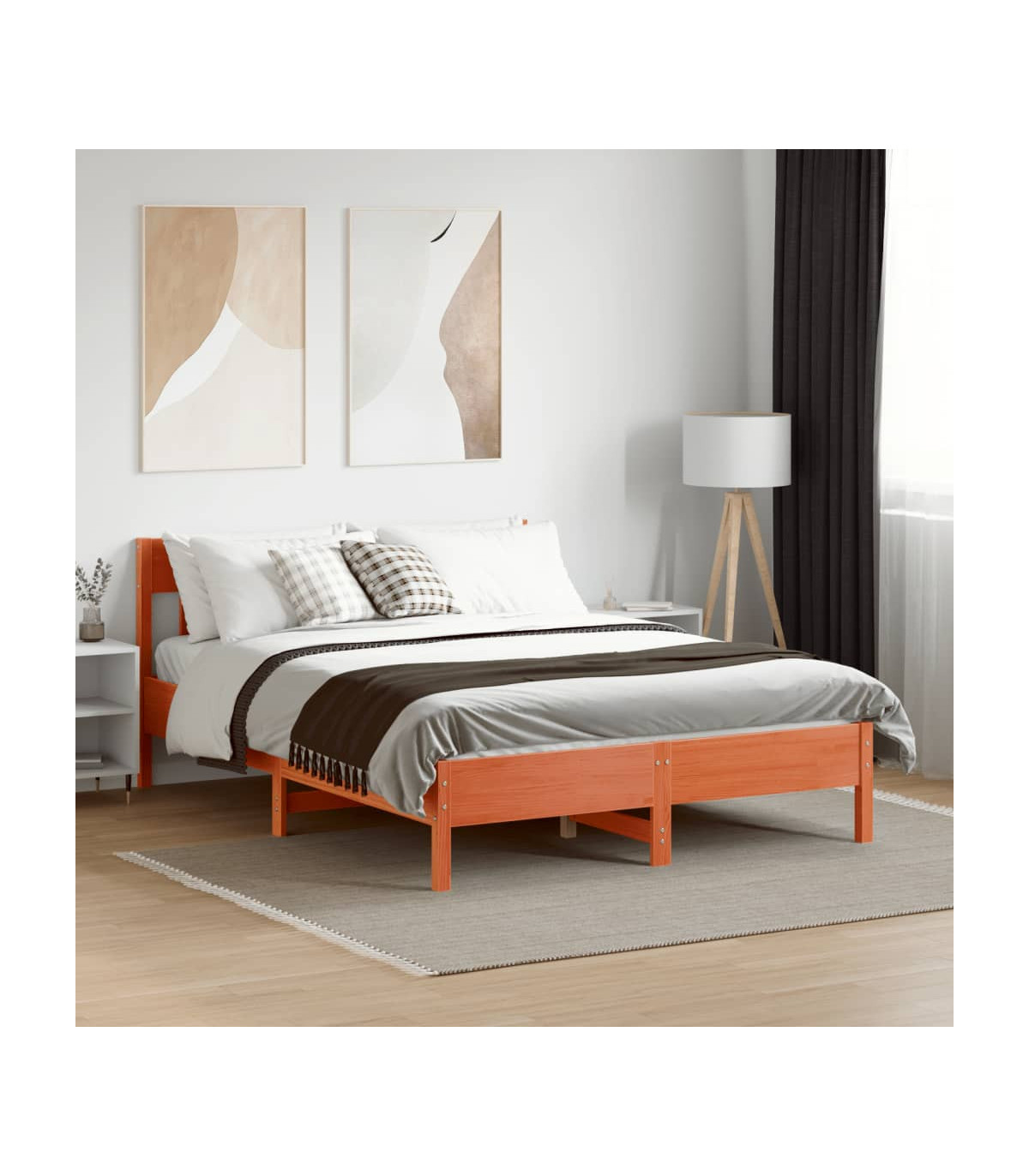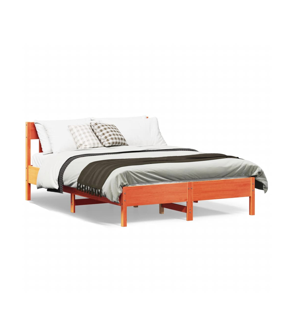 vidaXL Bed Frame with Headboard Wax Brown 160x200 cm Solid Wood Pine
