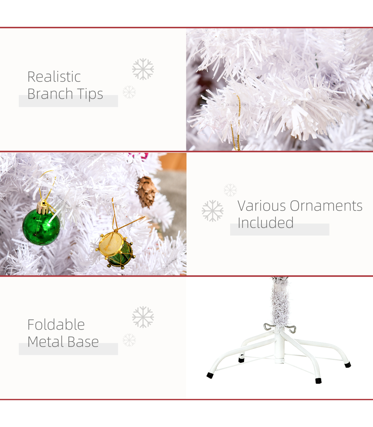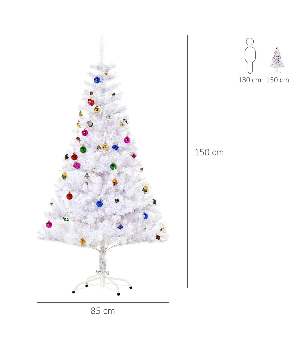- "5ft Snow Artificial Christmas Tree Metal Stand Elegant Faux White" - Description: - Strong and sturdy PVC branches to support your decorations and tinsels - 680 tips for a beautiful and full-bodied look - Comes with a mix of removable colourful decorations in the box - Detachable metal base keeps the tree in position - Branch shaping time: 20-35 minutes