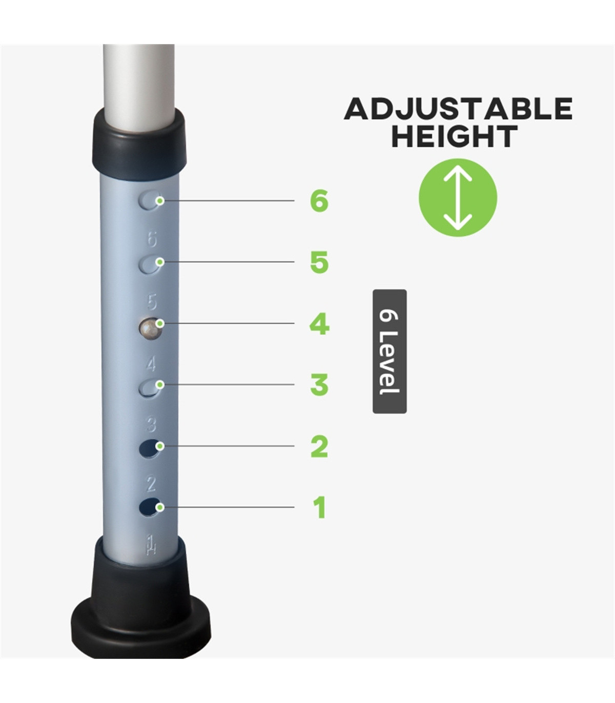 - The seat height is 6 position adjustable to provide personalized comfort and usability