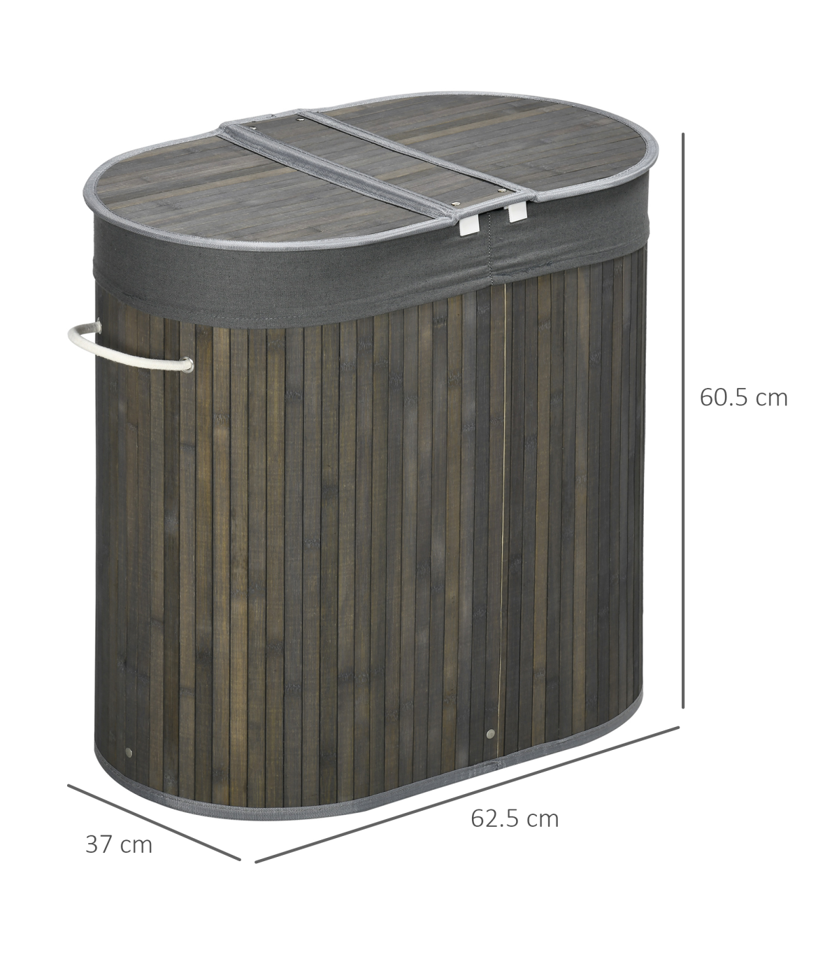 wash basket will keep mould build-up to a minimum. Side handles to carry around easily.Laundry hamper with lid: Paired with the two bottom holes, helps conceal smelly odours escaping from this laundry bin - keeps your space smelling fresh and looking tidy. Easy to lift up to fill with the clothes.Dimension: 60.5H x 62.5W x 37Dcm. Handle: 20cm. Assembly required.