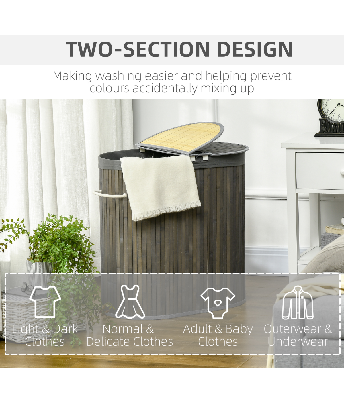 whether that be between you and a partner or via colours and washes, the choice is yours. The bamboo is naturally breathable and avoids collecting damp. Complete with an easy-lift lid and two handles.