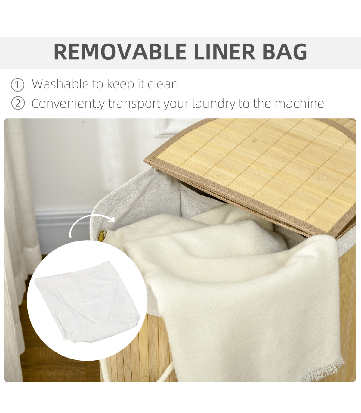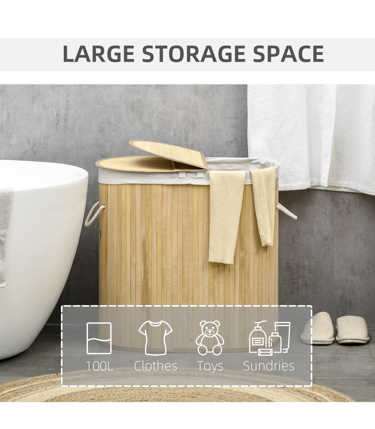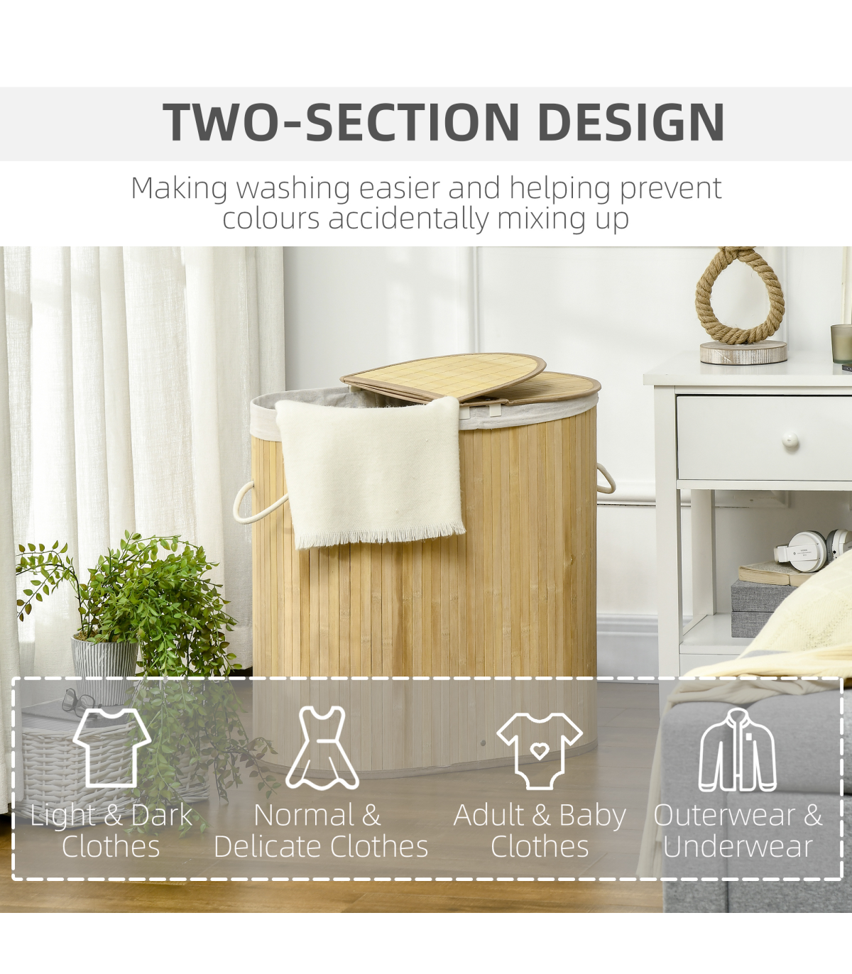 100L Bamboo Laundry Basket w/ 2 Compartments Washing Baskets Natural HOMCOM