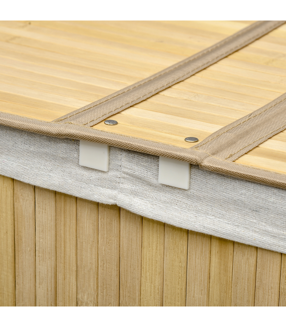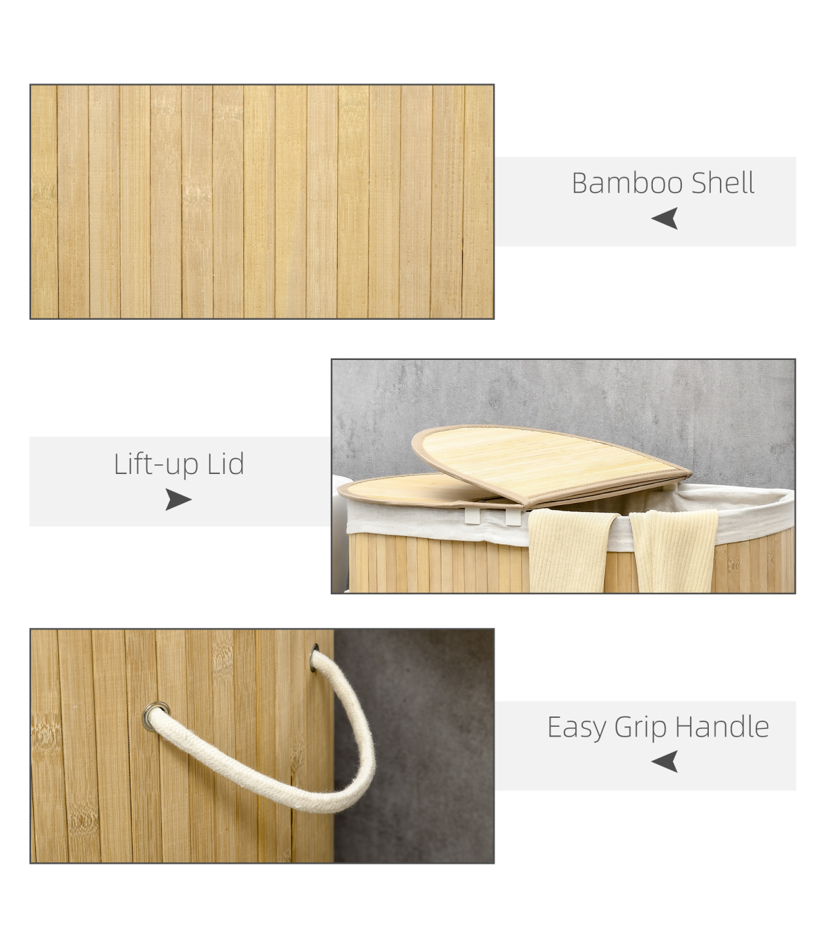 100 litre capacity: Spacious laundry basket has plenty of space for keeping all your dirty clothes. Use by yourself or with a partner: there's enough room.Two compartments: Separate clothing easily with the double laundry baskets - think lights/darks, delicates/heavier washes etc. This washing baskets for laundry also comes with removable lining.Bamboo structure: Dirty clothes basket is able to breathe properly - ideal for damp clothing