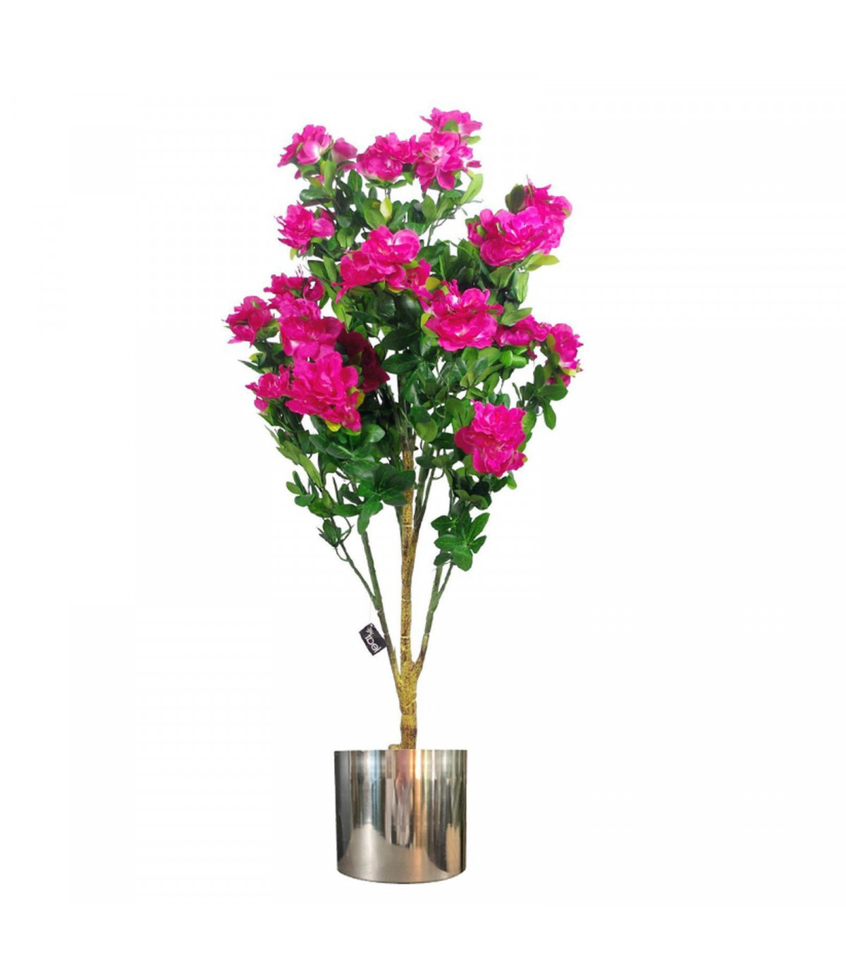 100cm Premium Artificial Azalea Pink Flowers Potted Plant with Silver Metal Planter