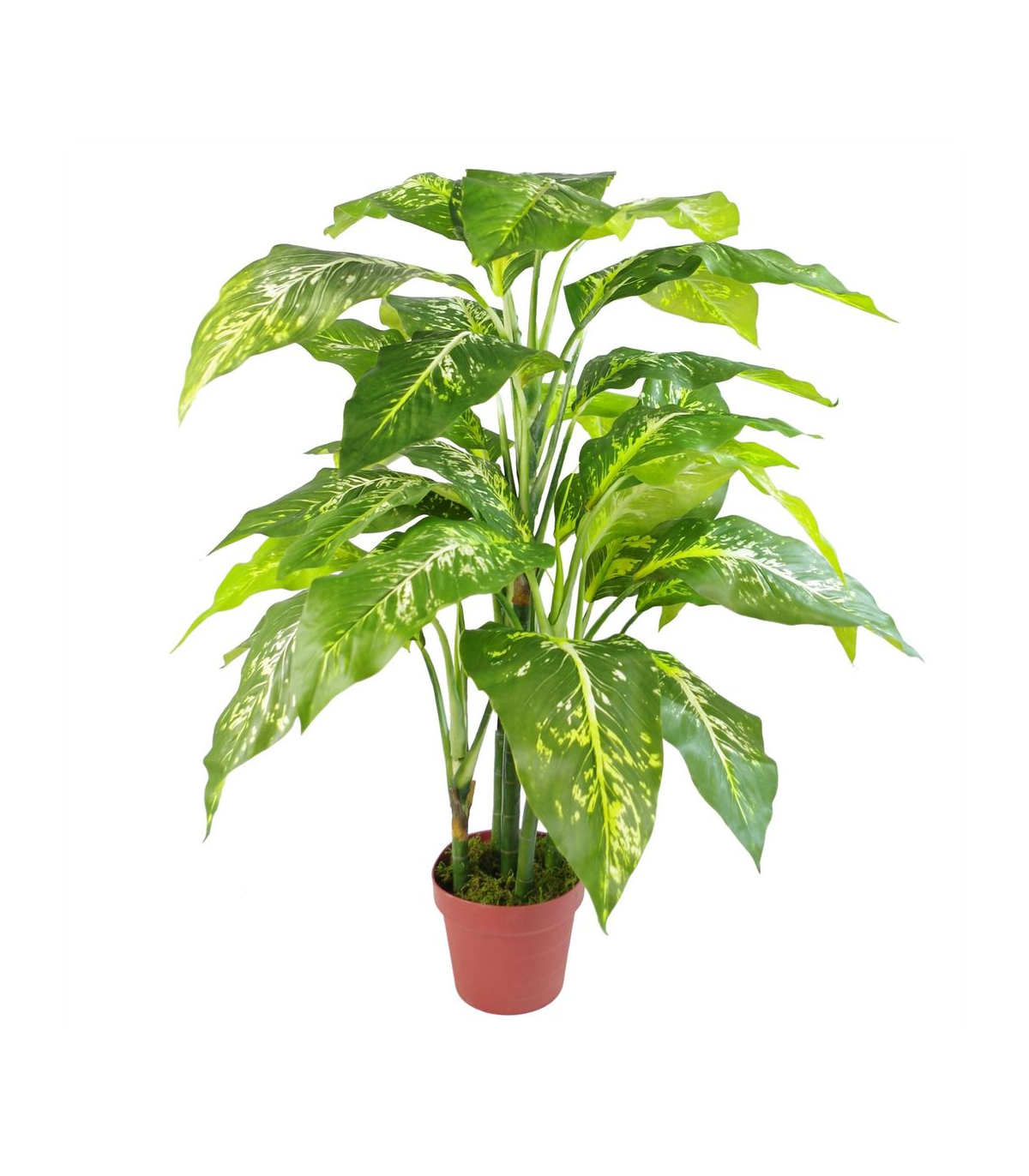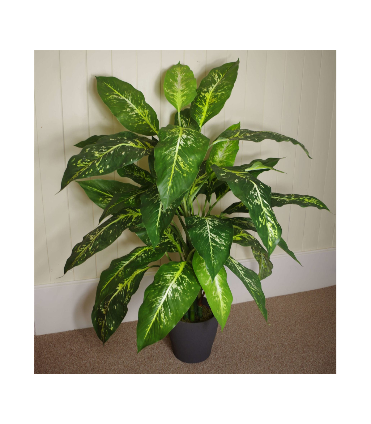 100cm Large Fox's Aglaonema (Spotted Evergreen) Tree Artificial Plant with Silver Metal Planter