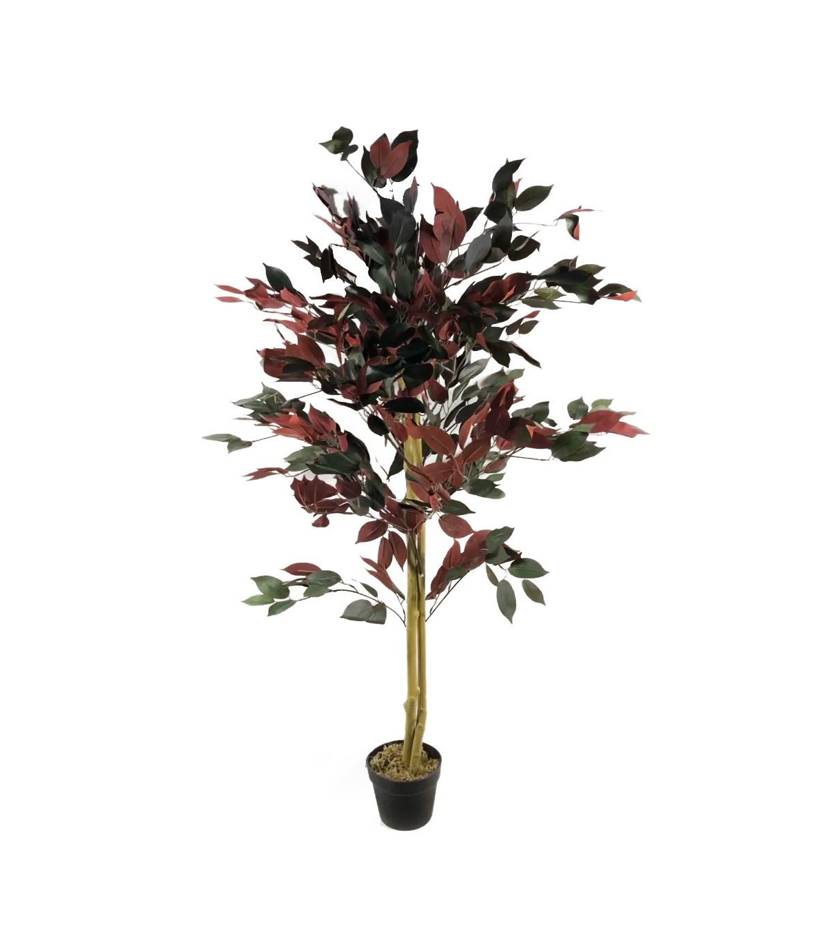 120cm (4ft) Artificial Dark Red Green Ficus Plant - Gold Planter