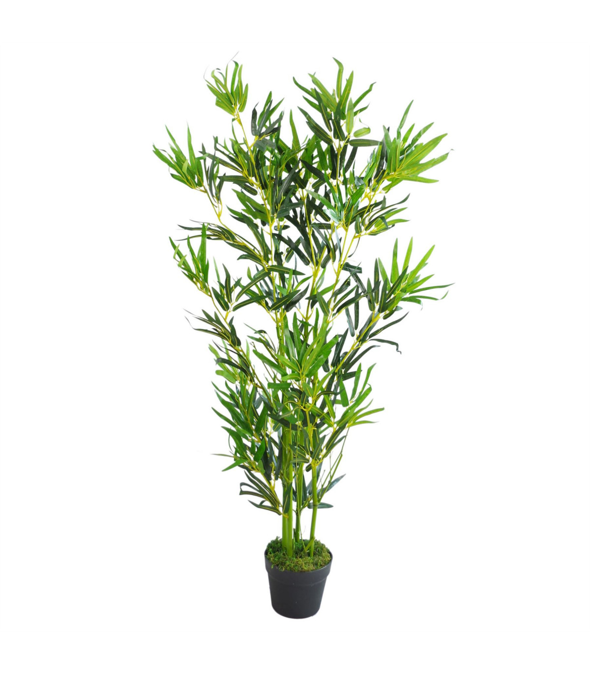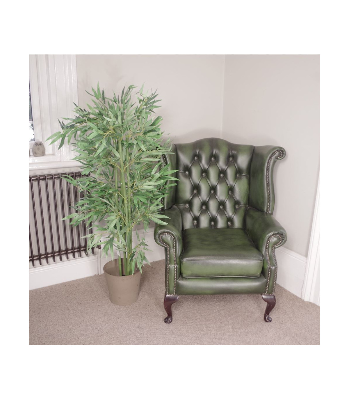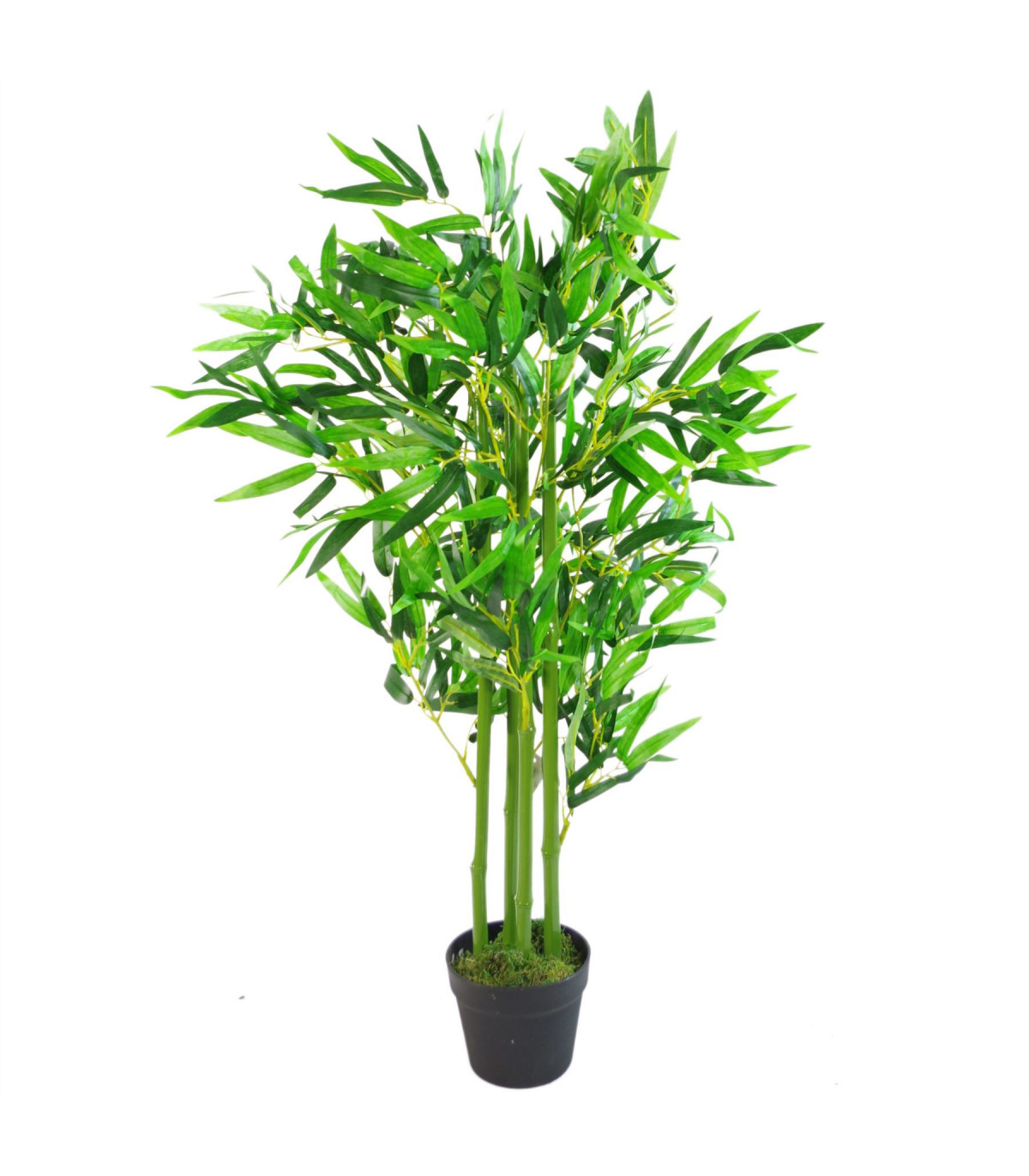 The classic indoor artificial plant- our artificial bamboo trees are fantastically realistic and require no maintenance! This tree stands 120cm (4ft) high when arranged as shown in our photographs and has extra wide leaves. Our artificial bamboo trees are available in a range of sizes and colours - see our other items. Highly realistic premium quality artificial plant. This bamboo comes potted in a plain black plastic pot and is ready to display but these do look all the more impressive if you stand them inside a larger decorative planter. Any decorative planters shown are for illustration only.