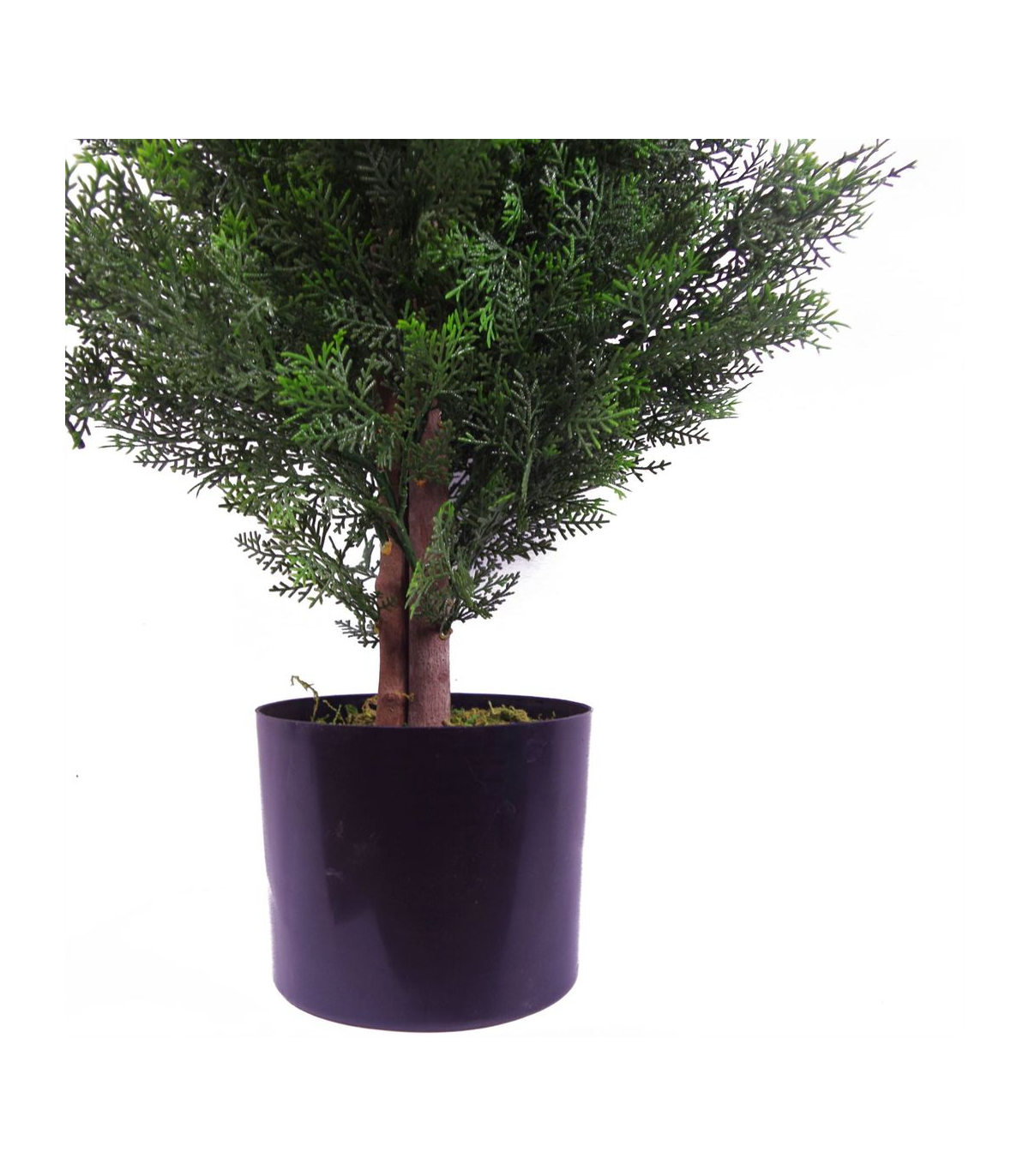 Our artificial cedar trees boast ultra realistic foliage and authentic wood trunks that effortlessly mimic the beauty of nature. These stunning creations are ideal for both indoor and outdoor use, adding a touch of elegance to any space. Standing at 120cm tall and 55cm wide, with a lush, natural shape, these artificial cedar trees are a sight to behold. Available in various sizes, these trees can be placed in a sheltered outdoor area or inside your home. To ensure longevity, we recommend protecting them from extreme temperatures. The wired stems allow for easy customization to suit your space perfectly. With botanically accurate foliage and lifelike details, our fake cedar trees are truly a work of art. Complete with a plain plastic pot, this tree is ready to be displayed, or you can place it in a larger planter for added grandeur. The base pot measures 18cm x 15cm, adding a touch of sophistication to your decor.