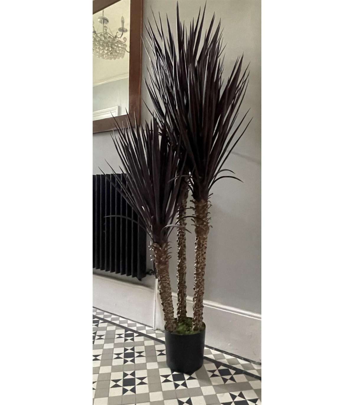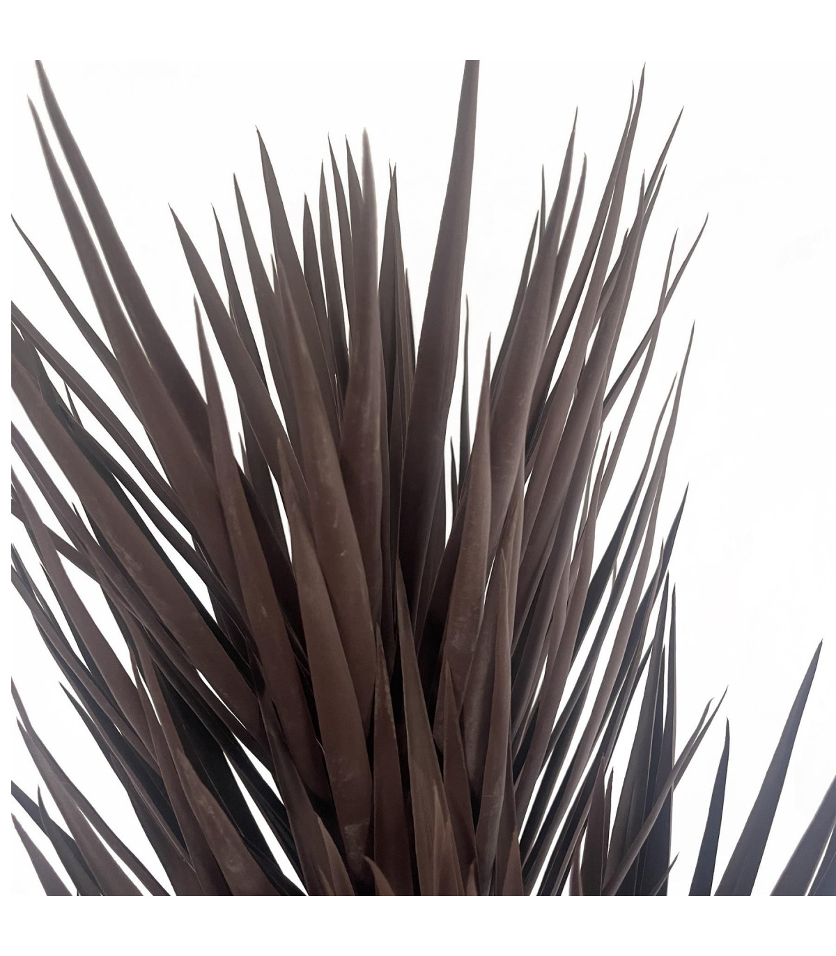 Fantastic and highly realistic spiky artificial plant ideal for conservatories. UV resistant suitable for outdoor use. This is a huge 155cm x 60cm x 60cm statement plant which looks very impressive and realistic. It is one of the more popular styles of tropical artificial plants we stock. It is ready to use straight out of the box - the leaves are plastic and naturally sit in the same way as a real yukka plant would do. It comes potted in a plastic weighted pot (measuring 19cm x 18cm) and whilst it can be left like that you can (if you wish) place it inside a larger planter for a different look. It is very easy to maintain - no watering required! It will benefit from the occasional dusting or can also be hosed off in the garden - these are very robust plants! This artificial tree stands 155cm high as shown in the pictures and is a dark brown red colour. Natural look leaves.