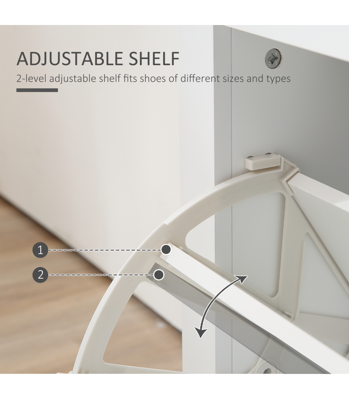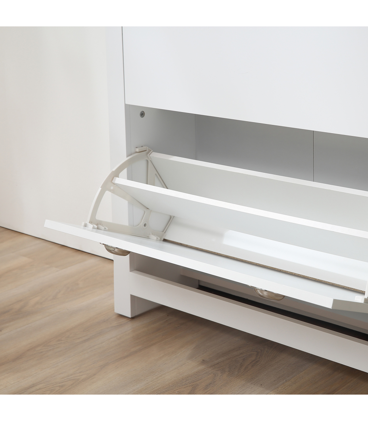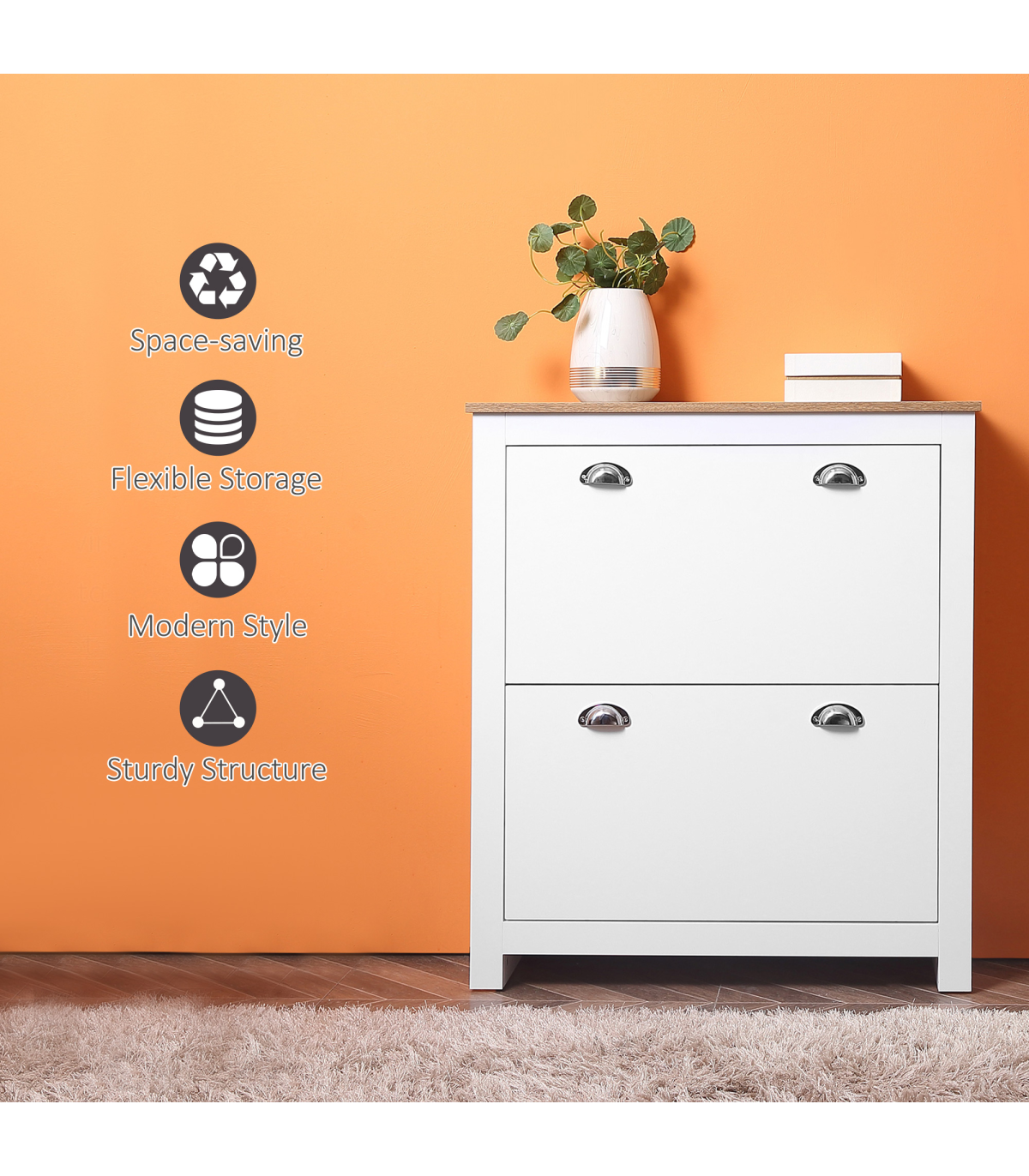 2 Drawer Shoe Cabinet Narrow Shoe Cupboard with Flip Doors White