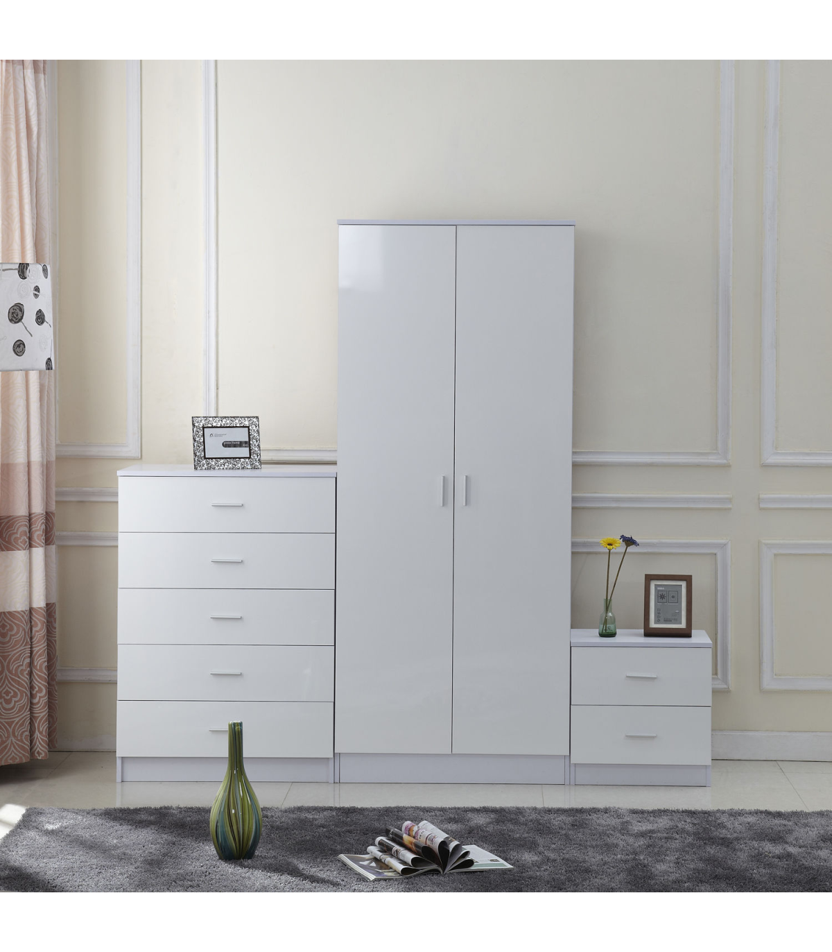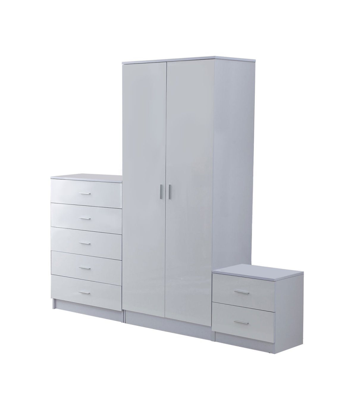 door wardrobe, 5-drawer chest and a 2-drawer beside