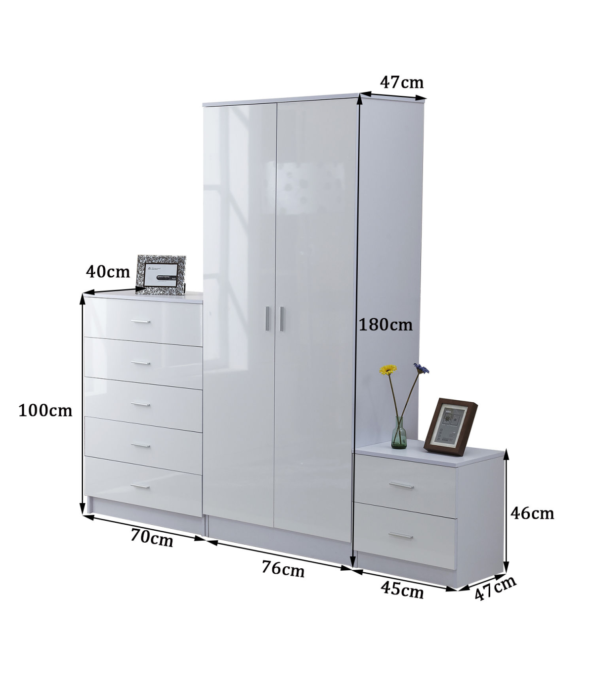 All 3 pieces are high gloss finish fronted, made from UV Board