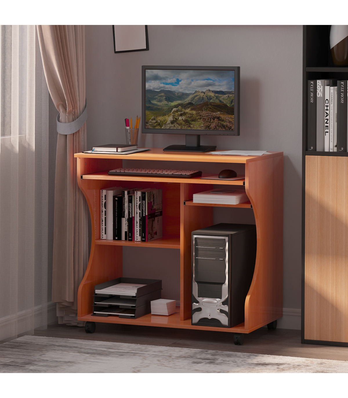 -Pull-out keyboard tray and mouse surface for sliding in and out to hide when not in use
