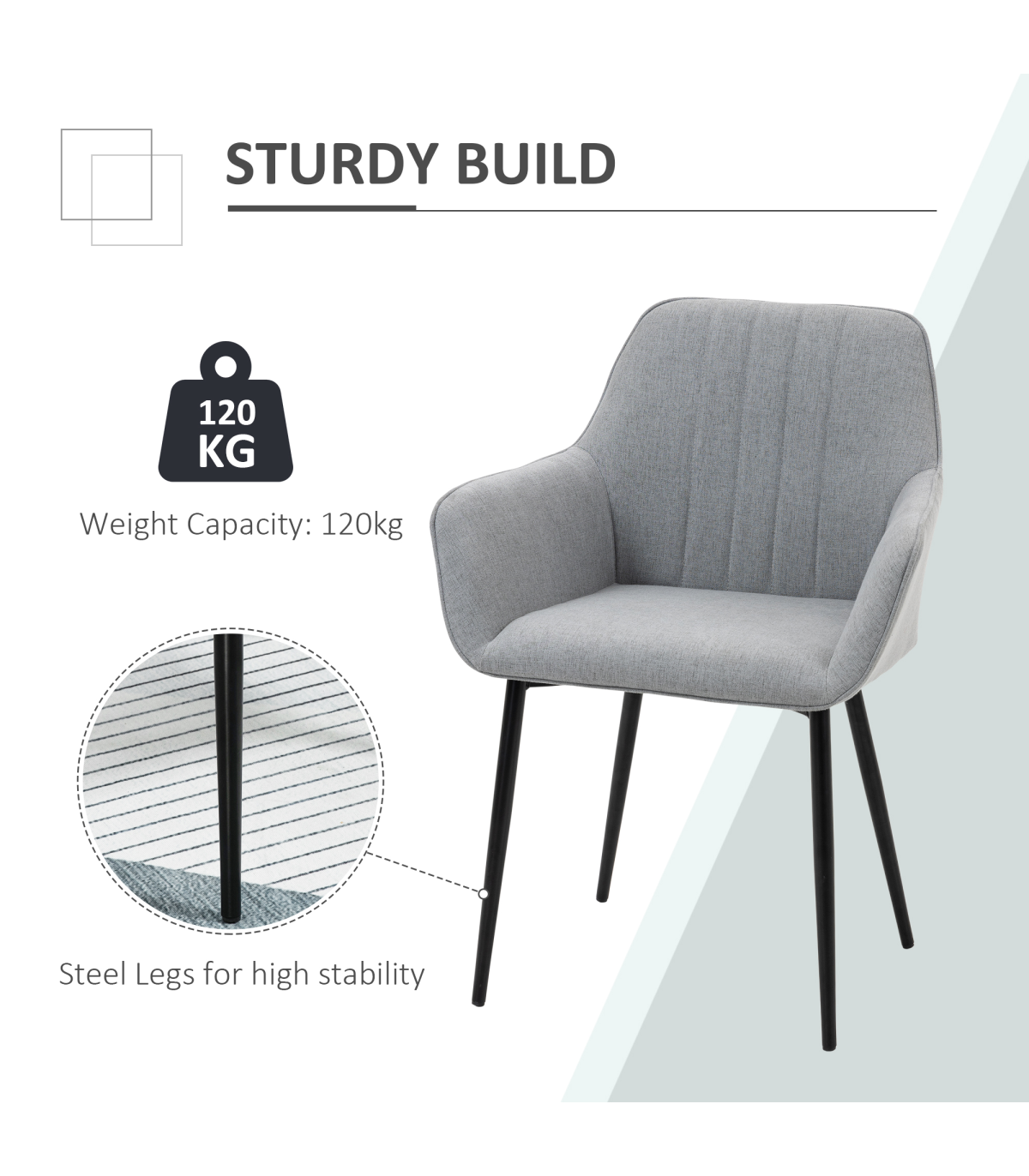 ? Breathable linen fabric and steel legs ensure easy cleaning and durability