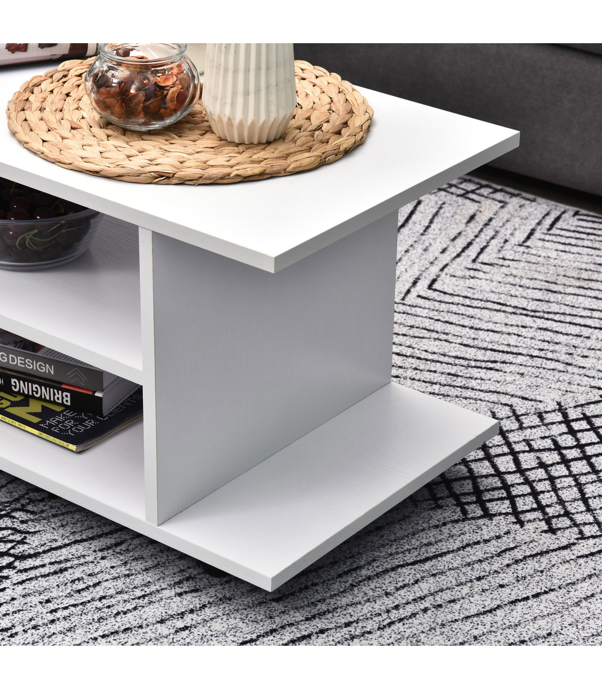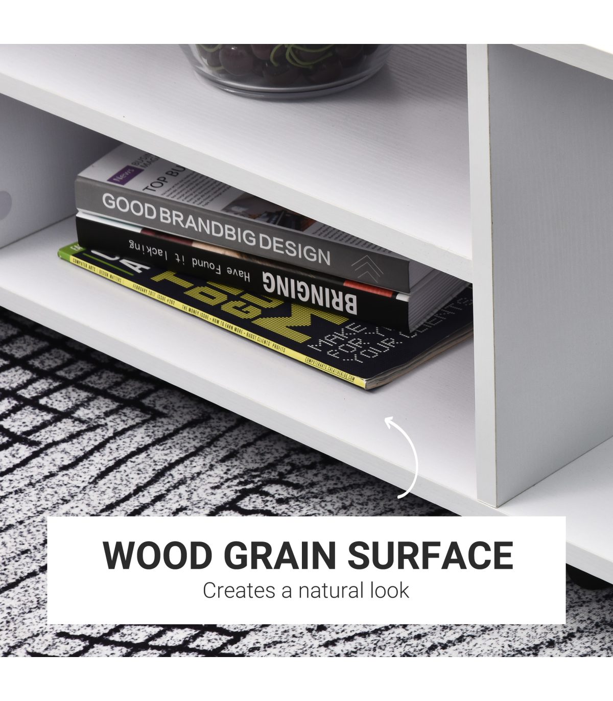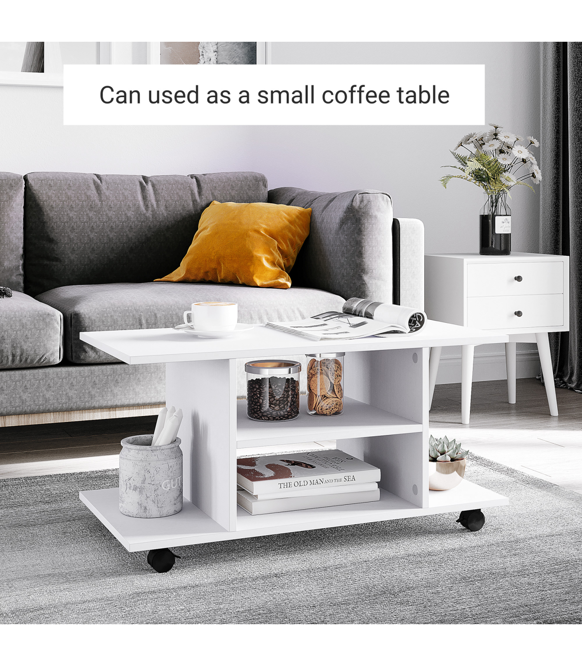 - "TV Stand Bookshelf Cabinet Modern 3 Tier Shelf Storage Wheels in White" - Description: - Elegant modern design - Solid and well-built furniture with fantastic quality and value - Ideal as a TV stand, side table, or storage shelf - 3-tier shelf for storing stuff - Four 360° castor wheels for easy movement - Wheels have brakes to keep the table static - Made of high-quality particle board with a matt finish effect carcass - Carcass made from melamine, water, and scratch resistant - Easy to clean and stain resistant - Comes flat-packed with a detailed manual