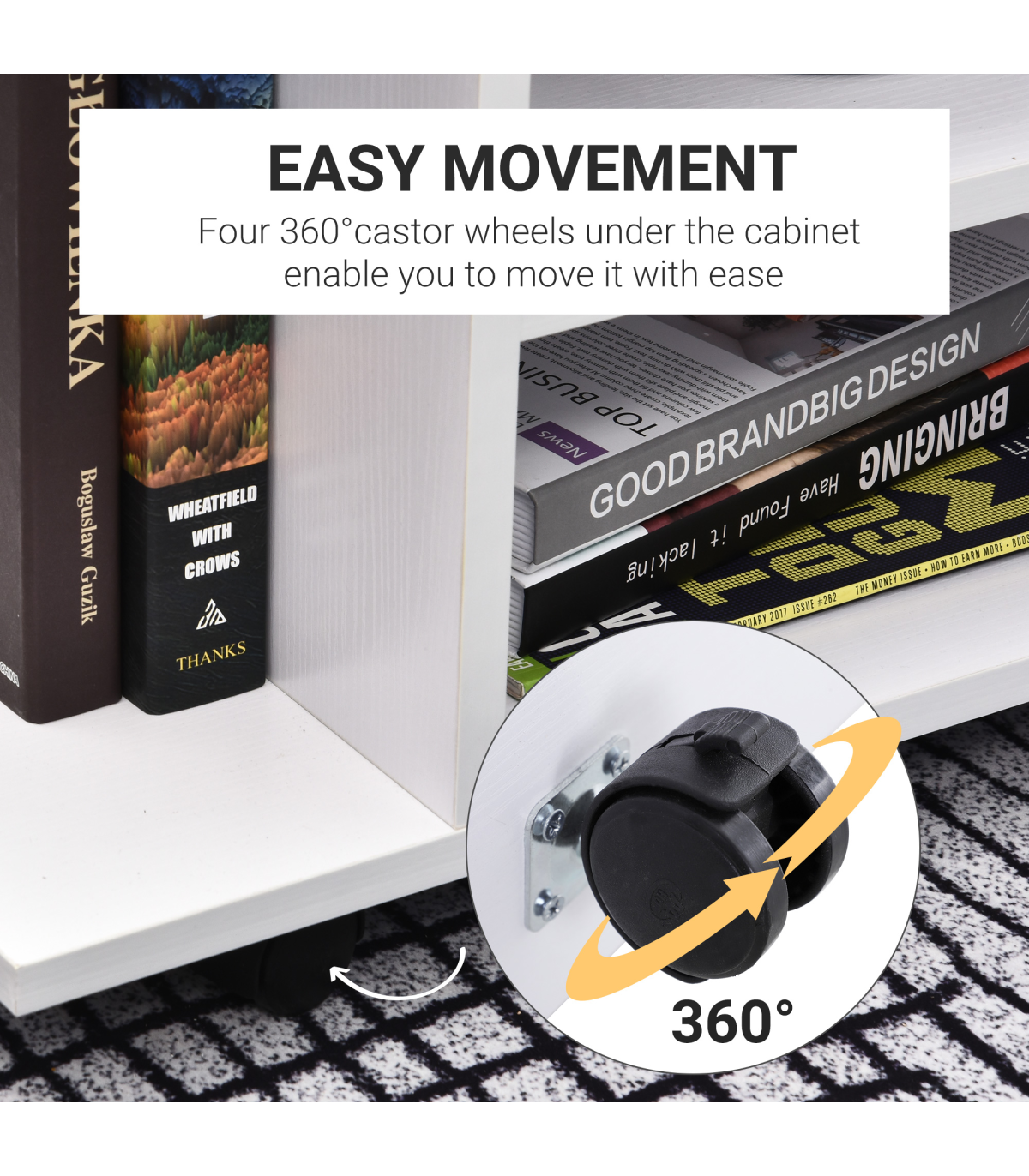 TV Stand Bookshelf Cabinet Modern 3 Tier shelf Storage Wheels in White