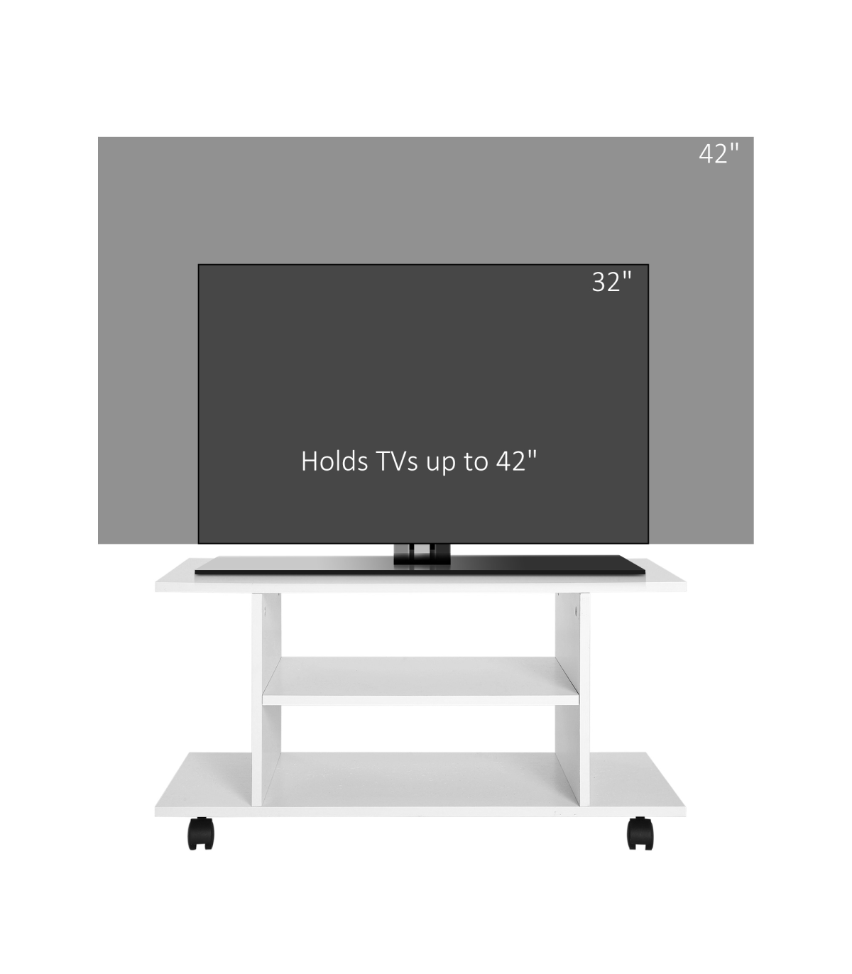 This stylish TV unit is an ideal option for living room furniture. Featuring a stand top and a two-layer open shelf, it provides more space for your other stuff. Four 360� castor wheels under the entertainment unit enable you to move it with ease to wherever you'd like. They also complete with brakes, so the table can be kept static in a certain place.