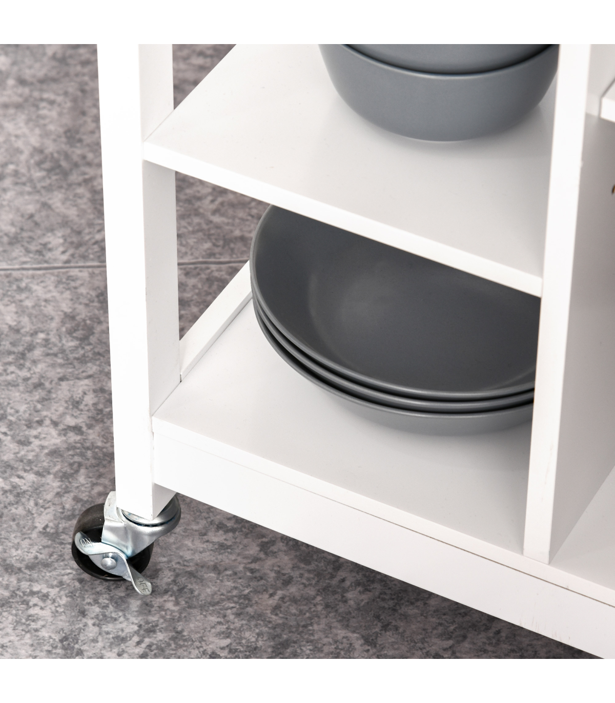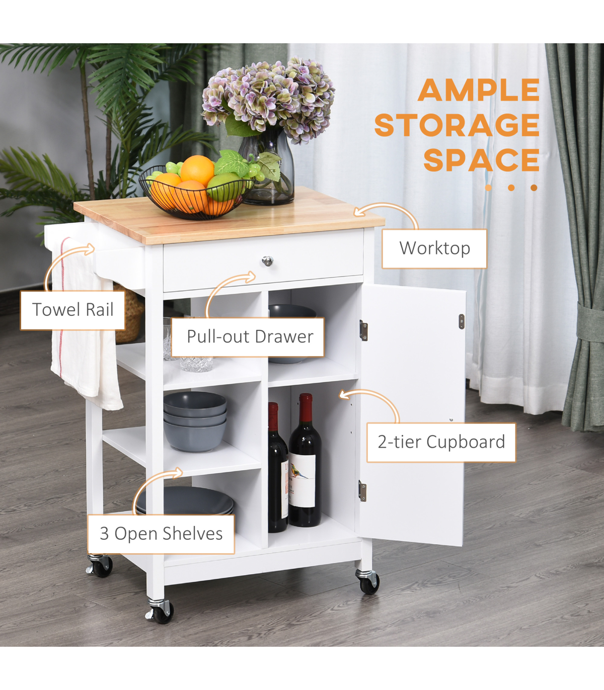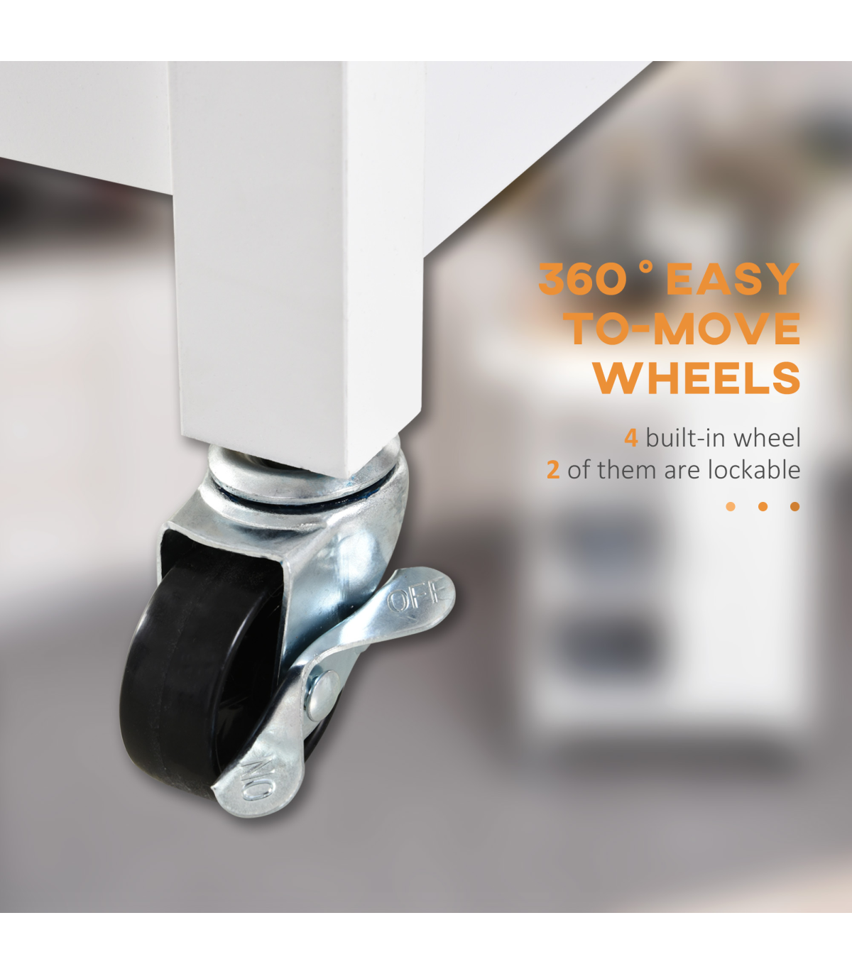 Four rolling wheels for easy movement: two with latches to keep unit stationery Ideal for home short on storage space