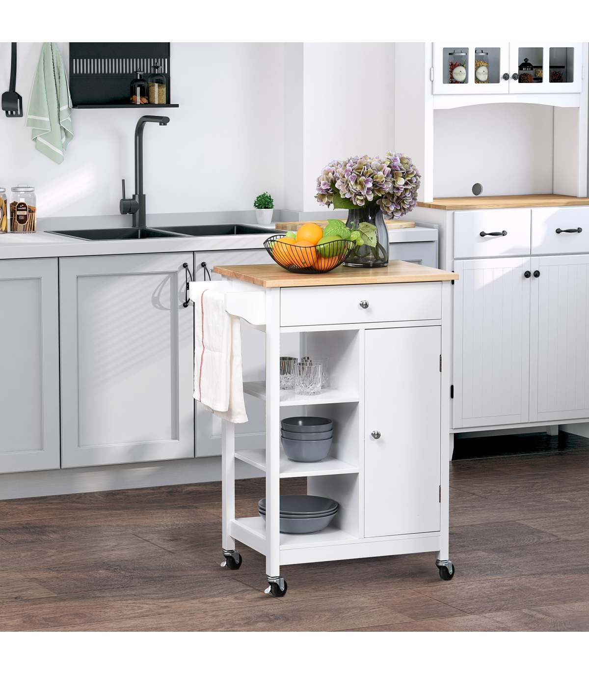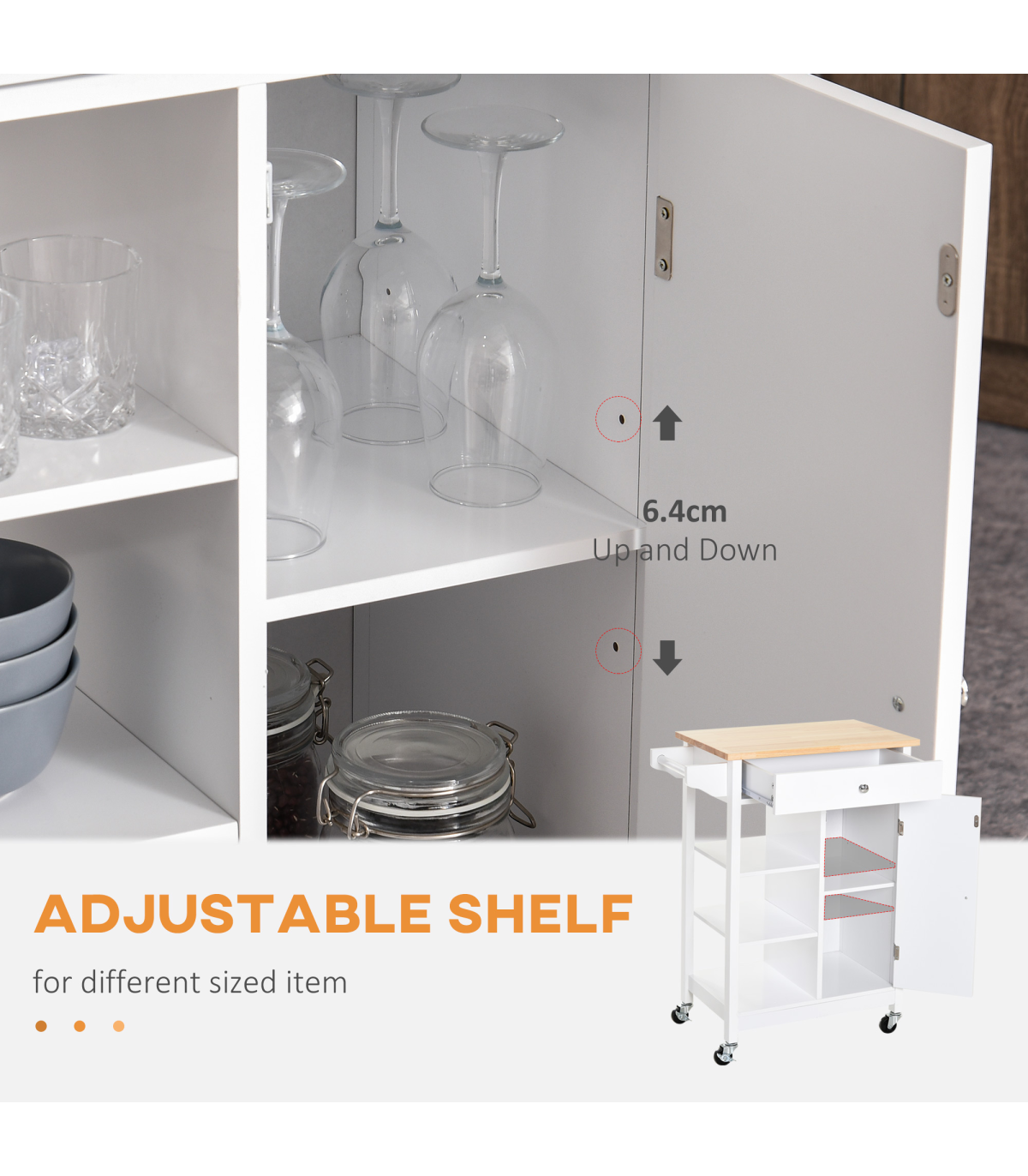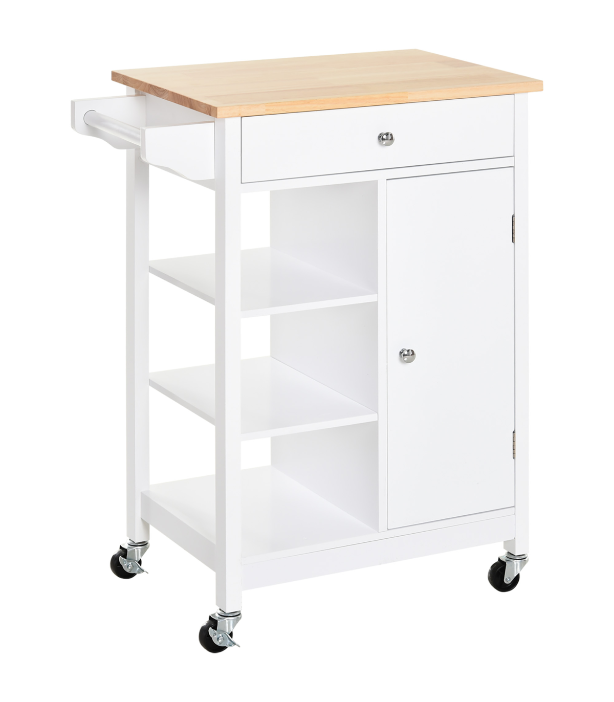 Four rolling wheels for easy movement: two with latches to keep unit stationery Ideal for home short on storage space