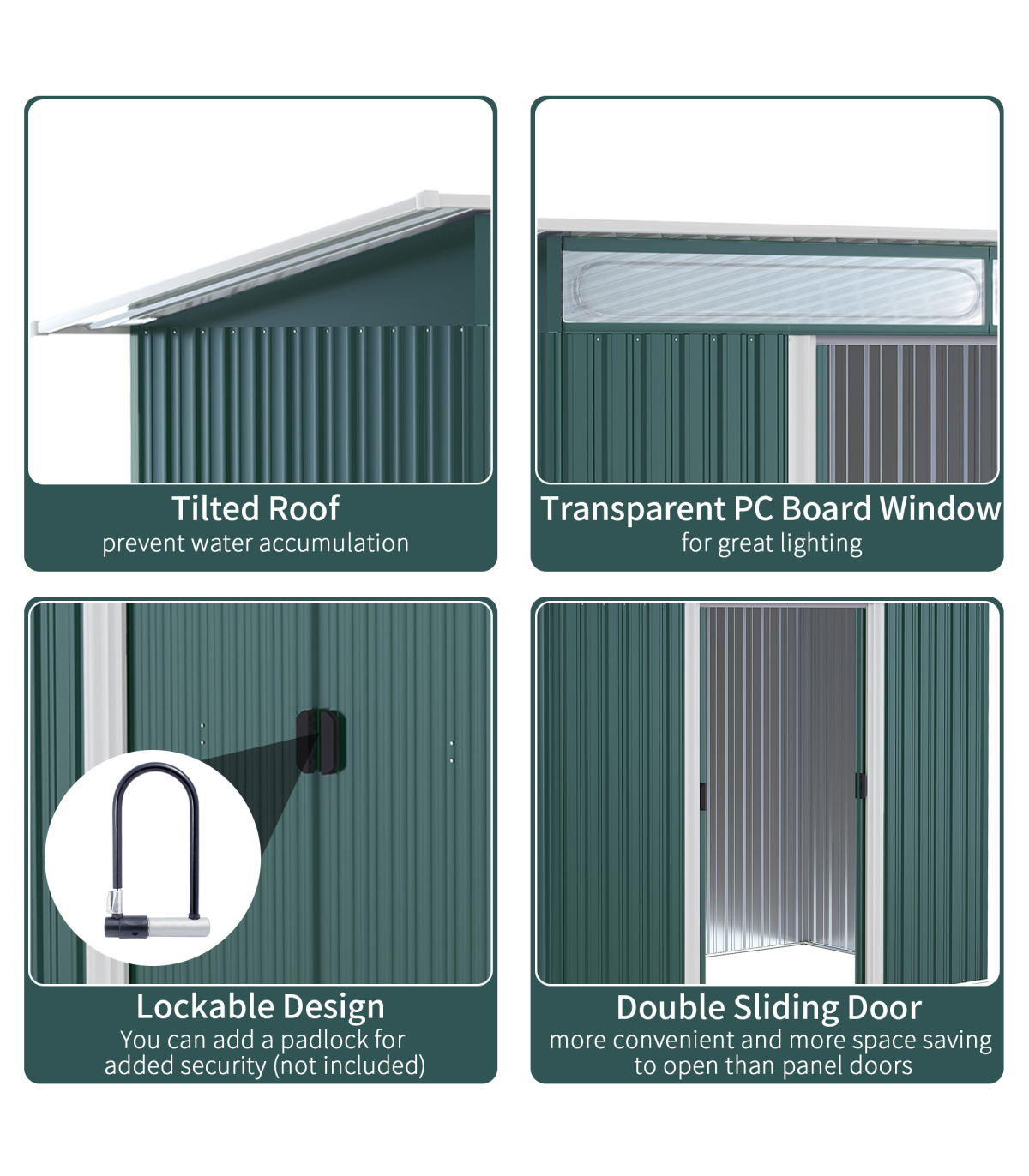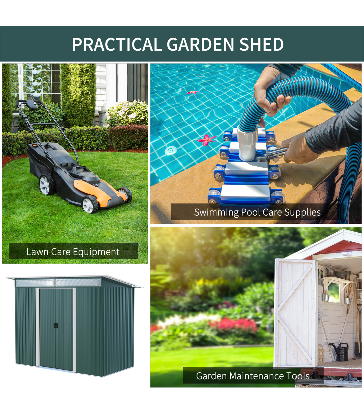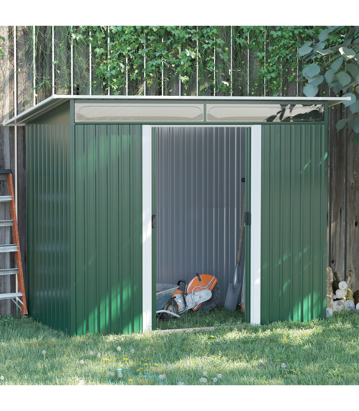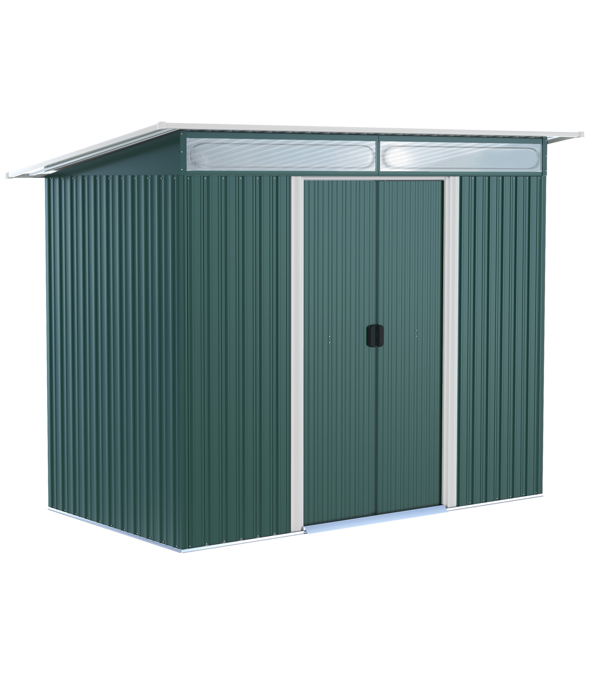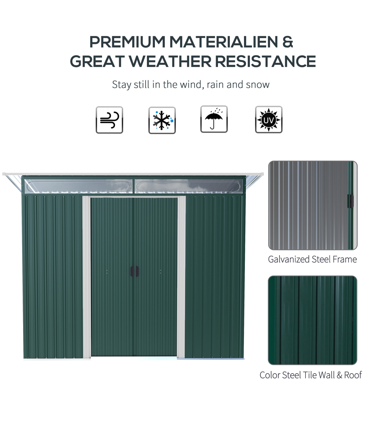 Pent Roofed Metal Shed Foundation Vent 260x133x200cm Sliding Door Green